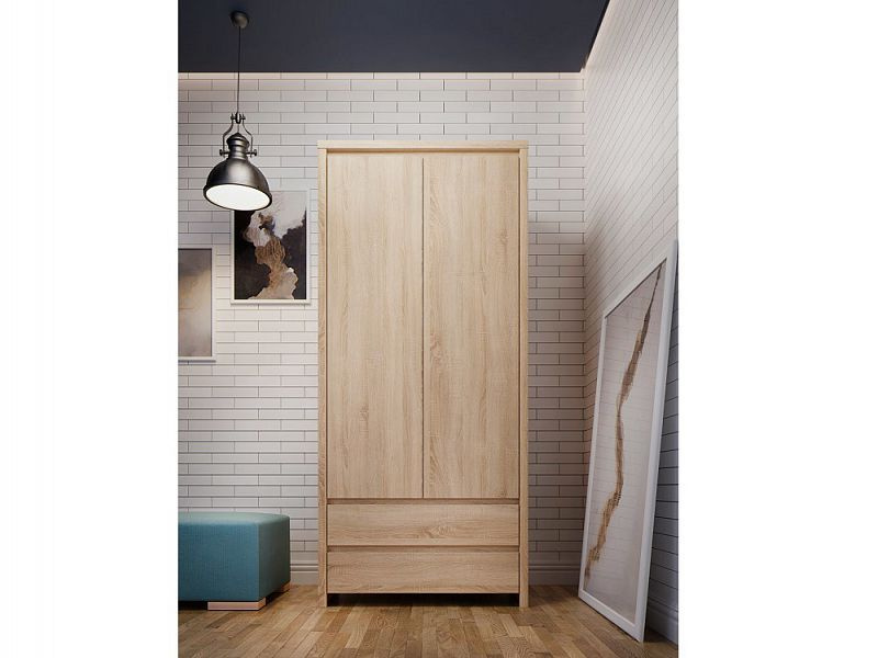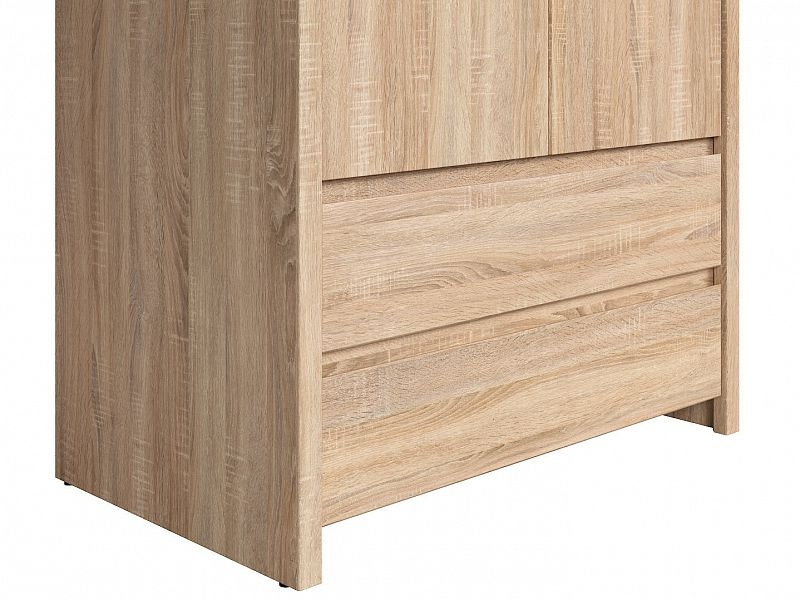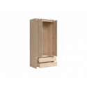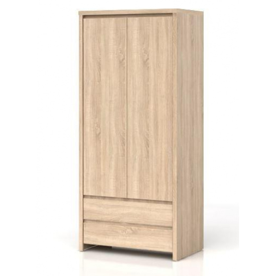 Šatní skříň SZF2D2S systém KASPIAN, dvoudveřová s šatní tyčí a dvěma šuplíky ve spodní části, tvarovaná přední hrana dvířek a čela zásuvky umožňuje bezúchytkové otvírání