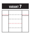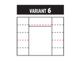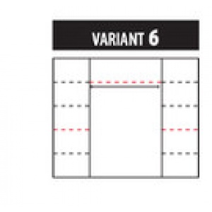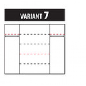 V základním provedení je skříň vybavená 4 policemi v menších částech skříně + šatní tyčí a 1 policí ve větší části, viz rozkres.