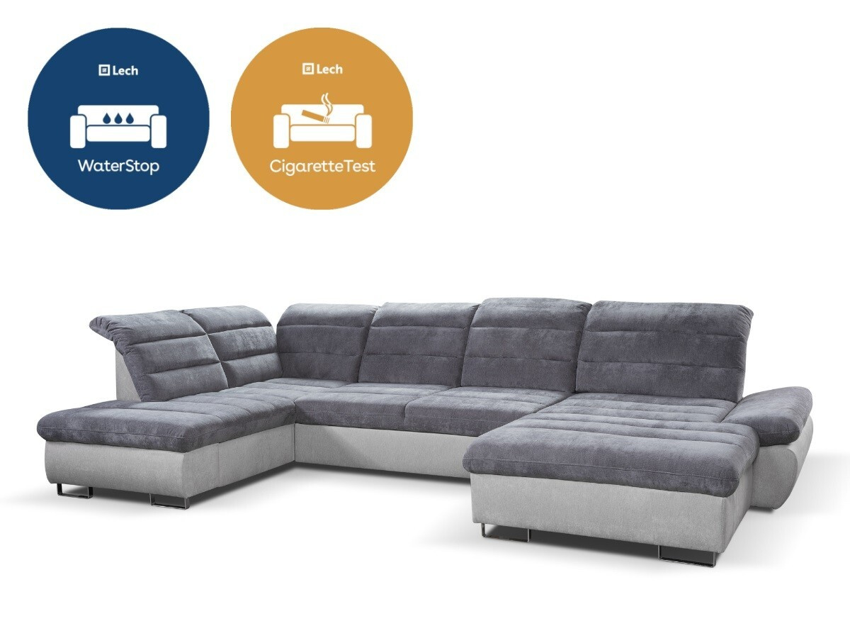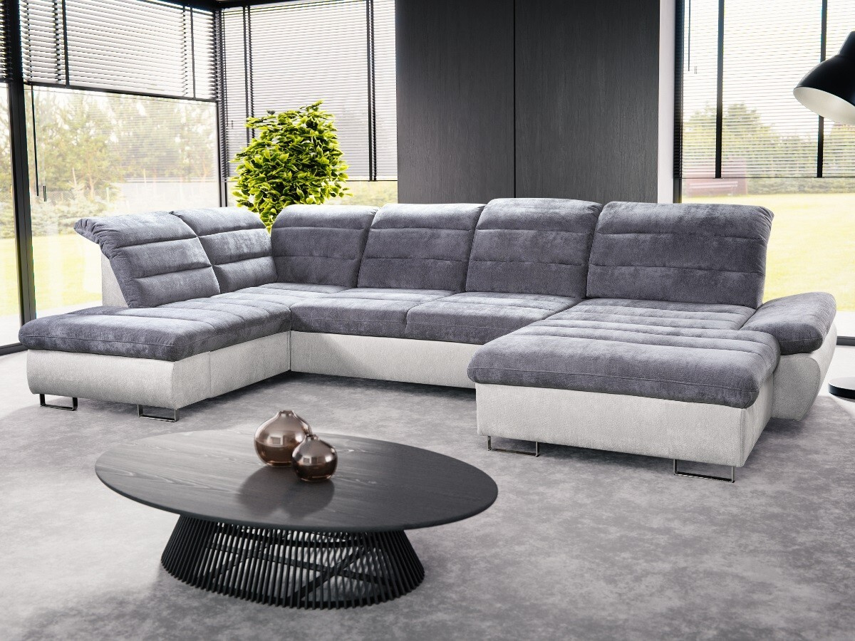 Komfortní sedací souprava do U ATHENA, velmi pohodlná jak na spaní, tak sezení. Sedačka má nastavitelné područky, opěrky hlavy i zad. Výška sedáku je 43 cm. Stavitelná hloubka sedáku je 75 cm s vysunutou opěrkou zad je hloubka 50 cm. Sedák je vyroben z vlnité pružiny a PUR pěny, což zaručuje pohodlné sezení. Sedací souprava je rozkládací s úložným prostorem - 2x zásuvka. Po rozložení získáte plochu na spaní o rozměrech 140 x 288 cm.
