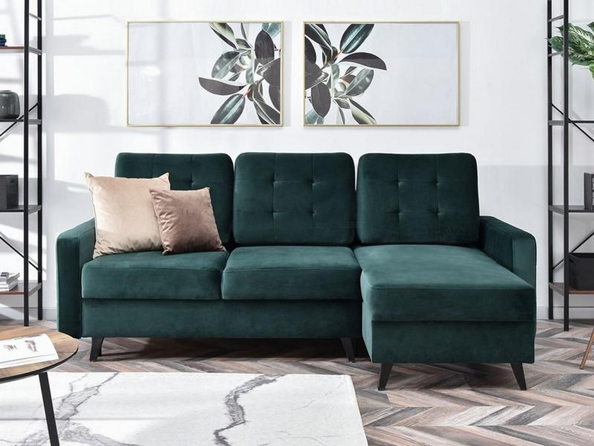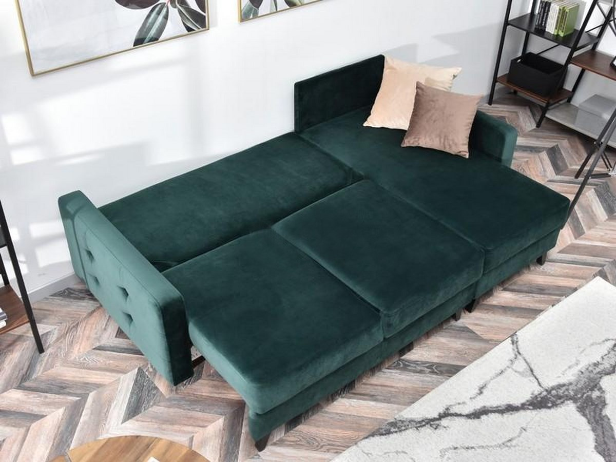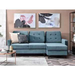 Víceúčelová rozkládací pohovka AURA s automatickým rozkladem a úložným prostorem, vhodná na příležitostné spaní. Základem sedáku jsou bonell pružiny a kvalitní PUR pěna T30, která zajistí pohodlné sezení. Nožičky jsou dřevěné. Sedací souprava AURA je vybavená velkým úložným prostorem, do kterého lze uschovat ložní prádlo nebo deku s polštářky. Zvolit si můžete pravé nebo levé provedení.
