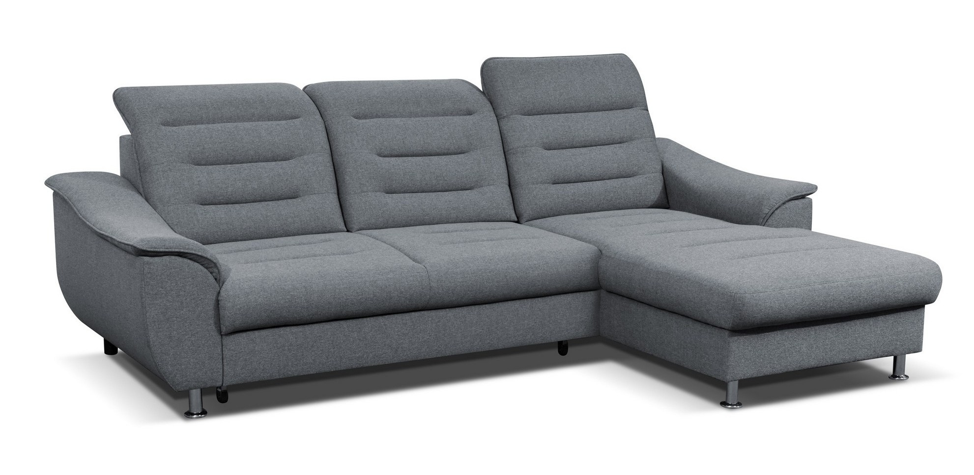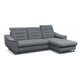 BELLO moderní modulová rohová sedací souprava, rozkládací, pro příležitostné přespání, s úložným prostorem v OT. Výplň sedáků je tvořena kombinací pružin Faliste a PUR pěny, která zajistí pohodlné sezení. Opěrky vyplněny pěnou s vyšší elastičností. Má polohovatelné záhlavníky a chromované ozdobné nožky. Pružinová matrace. Lze volit pravé či levé provedení. Sedací souprava se vyrábí ve velkém výběru potahových látek. K sedací soupravě lze dokoupit křeslo i taburet.