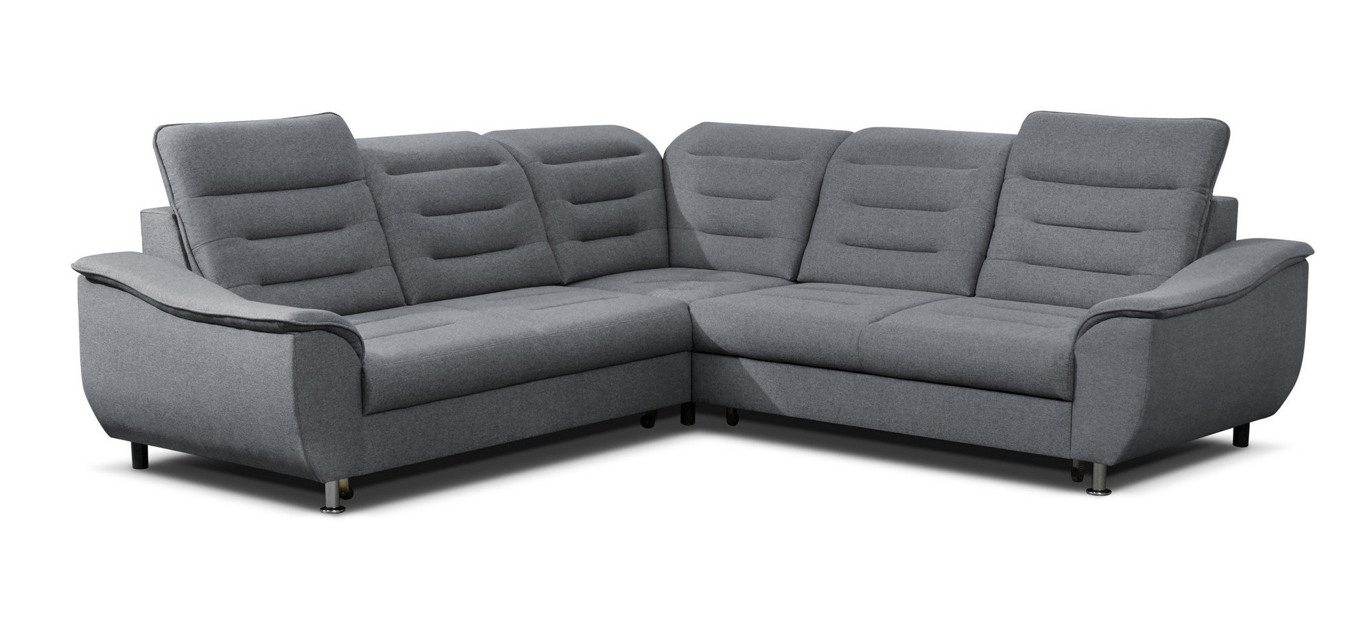 BELLO moderní modulová rohová sedací souprava, rozkládací, pro příležitostné přespání, s úložným prostorem v OT. Výplň sedáků je tvořena kombinací pružin Faliste a PUR pěny, která zajistí pohodlné sezení. Opěrky vyplněny pěnou s vyšší elastičností. Má polohovatelné záhlavníky a chromované ozdobné nožky. Pružinová matrace. Lze volit pravé či levé provedení. Sedací souprava se vyrábí ve velkém výběru potahových látek. K sedací soupravě lze dokoupit křeslo i taburet.