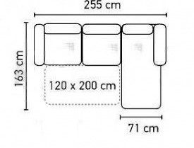 Celkový rozměr: 255 cm x 163 cm, po rozložení je rozměr lůžka 120 x 200 cm.