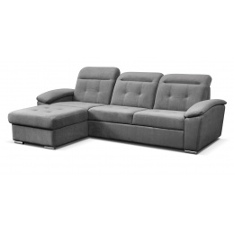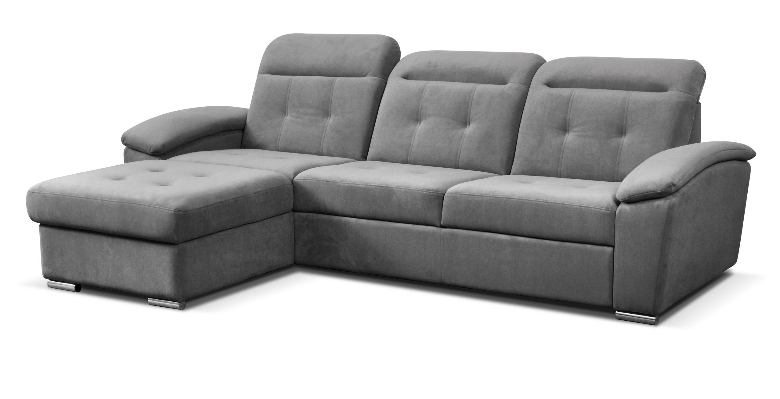 COMFORT moderní modulová rohová sedací souprava, rozkládací, pro příležitostné přespání, s úložným prostorem v OT. Výplň sedáků je tvořena kombinací pružin Faliste a PUR pěny, která zajistí pohodlné sezení. Opěrky vyplněny pěnou s vyšší elastičností. Má polohovatelné záhlavníky a chromované ozdobné nožky. Pružinová matrace. Lze volit pravé či levé provedení. Sedací souprava se vyrábí ve velkém výběru potahových látek. K sedací soupravě lze dokoupit křeslo i taburet.