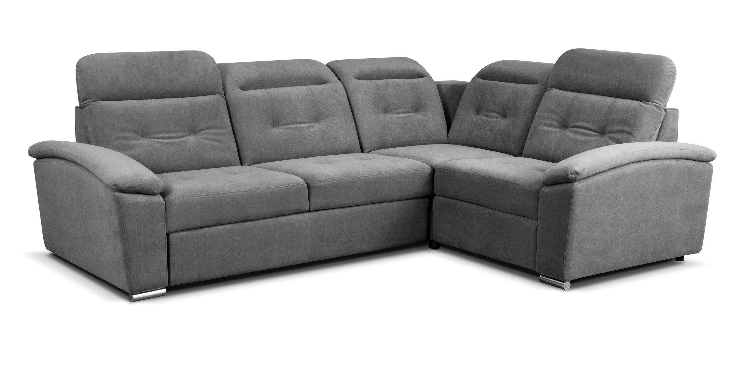COMFORT moderní modulová rohová sedací souprava, rozkládací, pro příležitostné přespání, s úložným prostorem v OT. Výplň sedáků je tvořena kombinací pružin Faliste a PUR pěny, která zajistí pohodlné sezení. Opěrky vyplněny pěnou s vyšší elastičností. Má polohovatelné záhlavníky a chromované ozdobné nožky. Pružinová matrace. Lze volit pravé či levé provedení. Sedací souprava se vyrábí ve velkém výběru potahových látek. K sedací soupravě lze dokoupit křeslo i taburet.