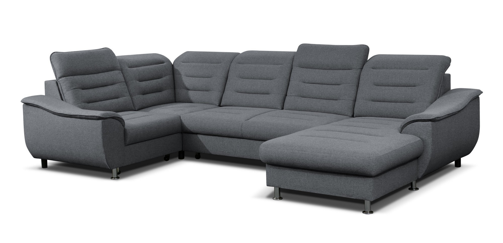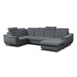 BELLO moderní modulová rohová sedací souprava do U, rozkládací, pro příležitostné přespání, s úložným prostorem v OT. Výplň sedáků je tvořena kombinací pružin Faliste a PUR pěny, která zajistí pohodlné sezení. Opěrky vyplněny pěnou s vyšší elastičností. Má polohovatelné záhlavníky a chromované ozdobné nožky. Pružinová matrace. Lze volit pravé či levé provedení. Sedací souprava se vyrábí ve velkém výběru potahových látek. K sedací soupravě lze dokoupit křeslo i taburet.
