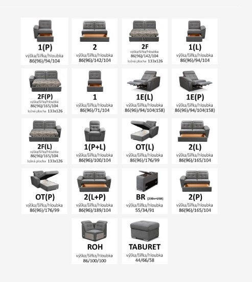 Modulová sedací souprava do U COMFORT - OTT + 2F + R + 1ÚP ( pravé nebo levé provedení )