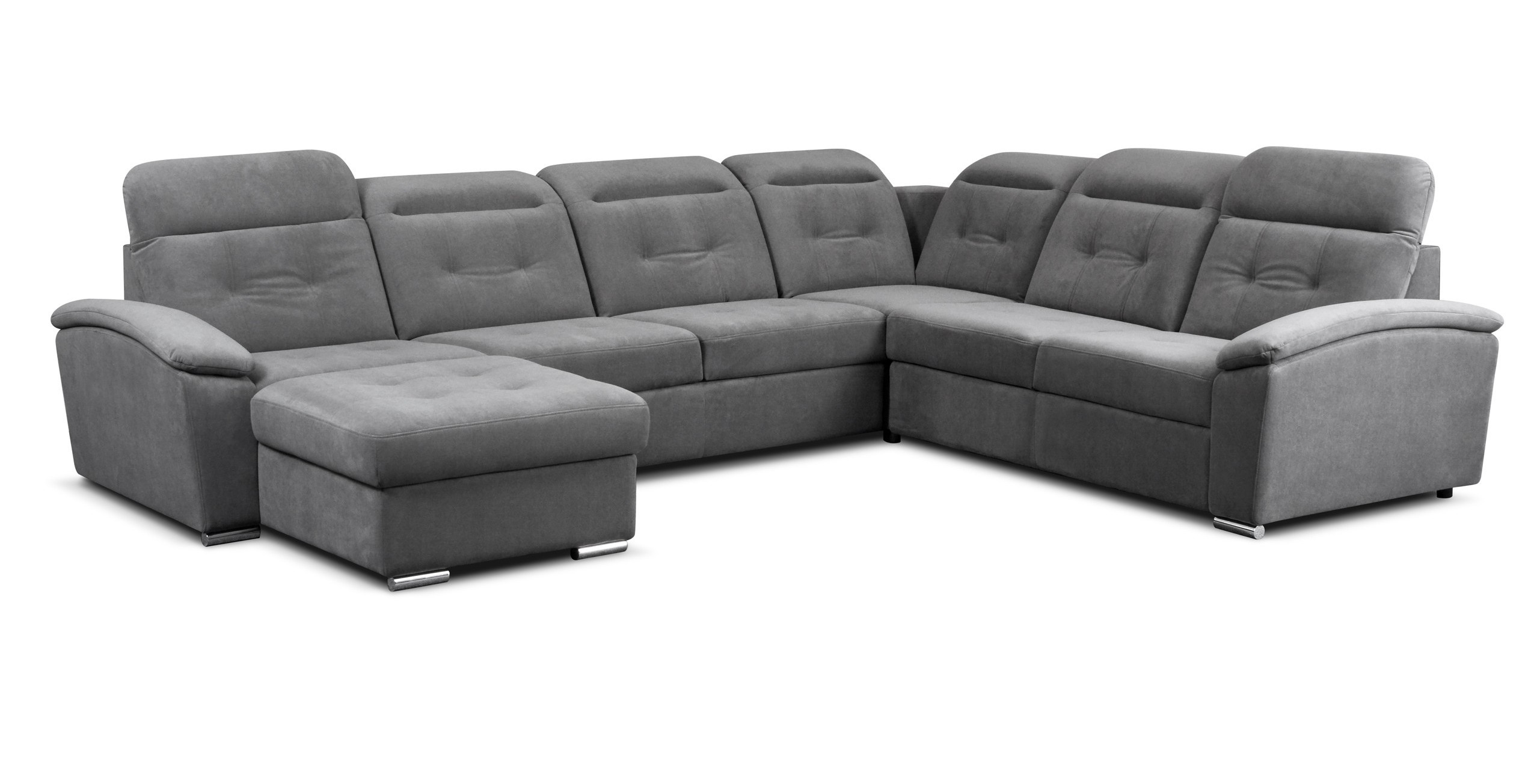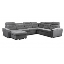 COMFORT moderní modulová sedací souprava do U, rozkládací, pro příležitostné přespání, s úložným prostorem v OT. Výplň sedáků je tvořena kombinací pružin Faliste a PUR pěny, která zajistí pohodlné sezení. Opěrky vyplněny pěnou s vyšší elastičností. Má polohovatelné záhlavníky a chromované ozdobné nožky. Pružinová matrace. Lze volit pravé či levé provedení. Sedací souprava se vyrábí ve velkém výběru potahových látek. K sedací soupravě lze dokoupit křeslo i taburet.