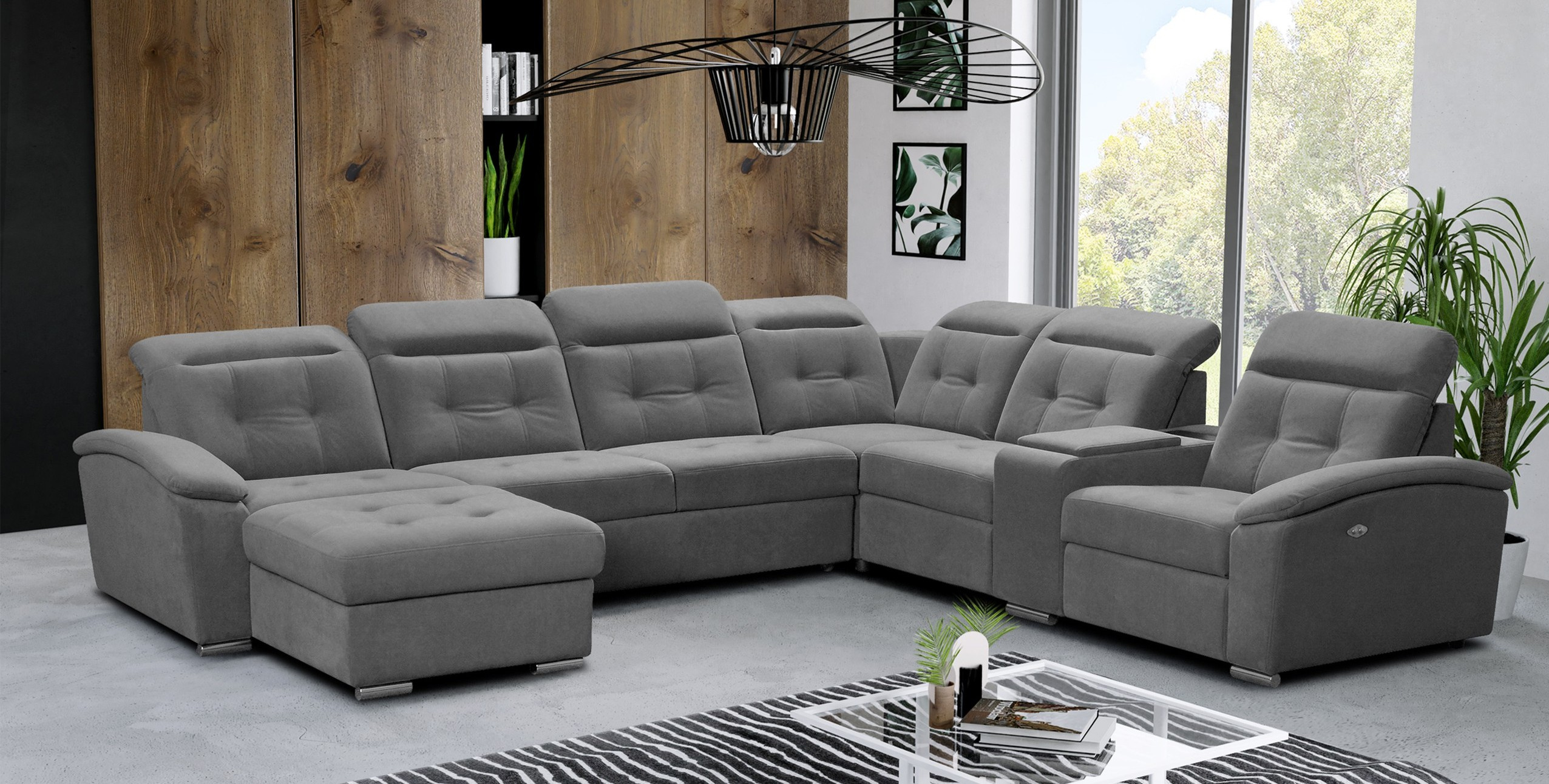 Tuto sedací soupravu si můžete sestavit podle sebe. Unikátní prvky sedací soupravy je polohovací křeslo a úložná područka na připojení USB s elektrickou zásuvkou.