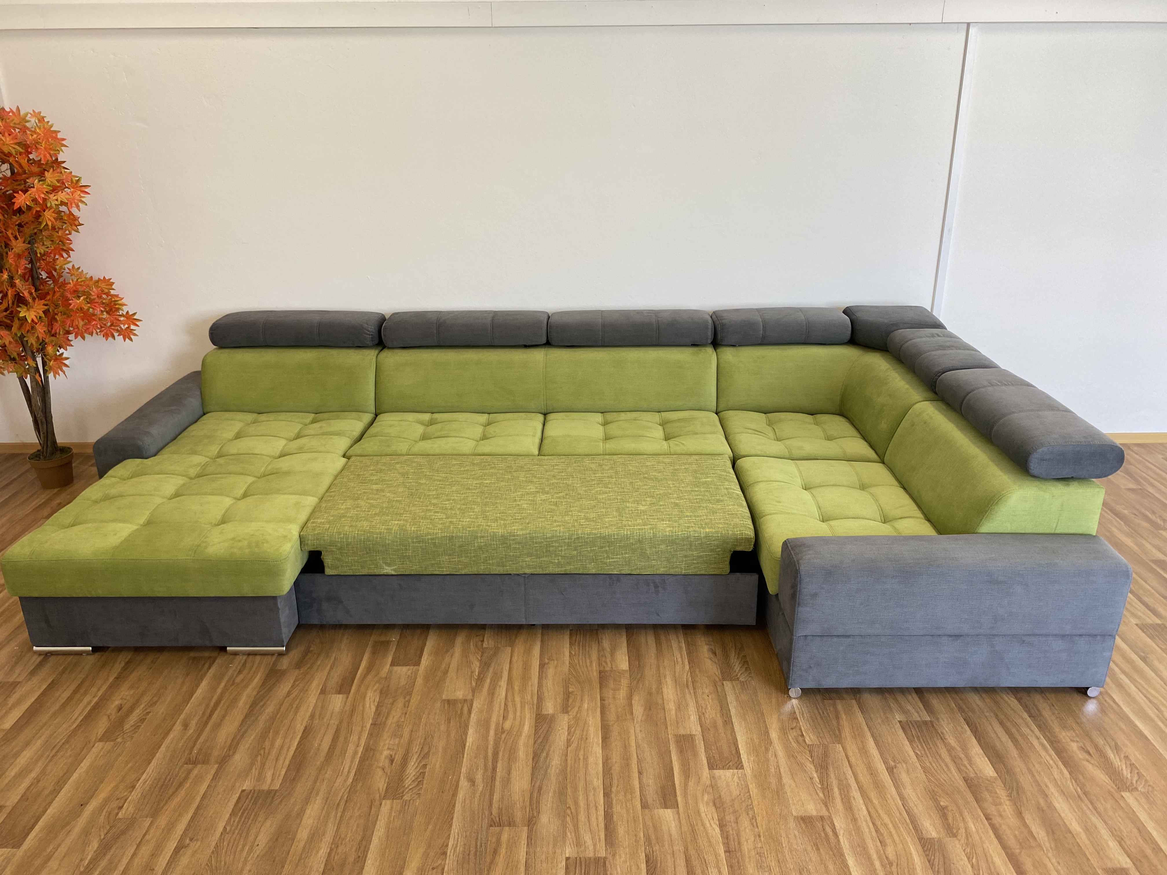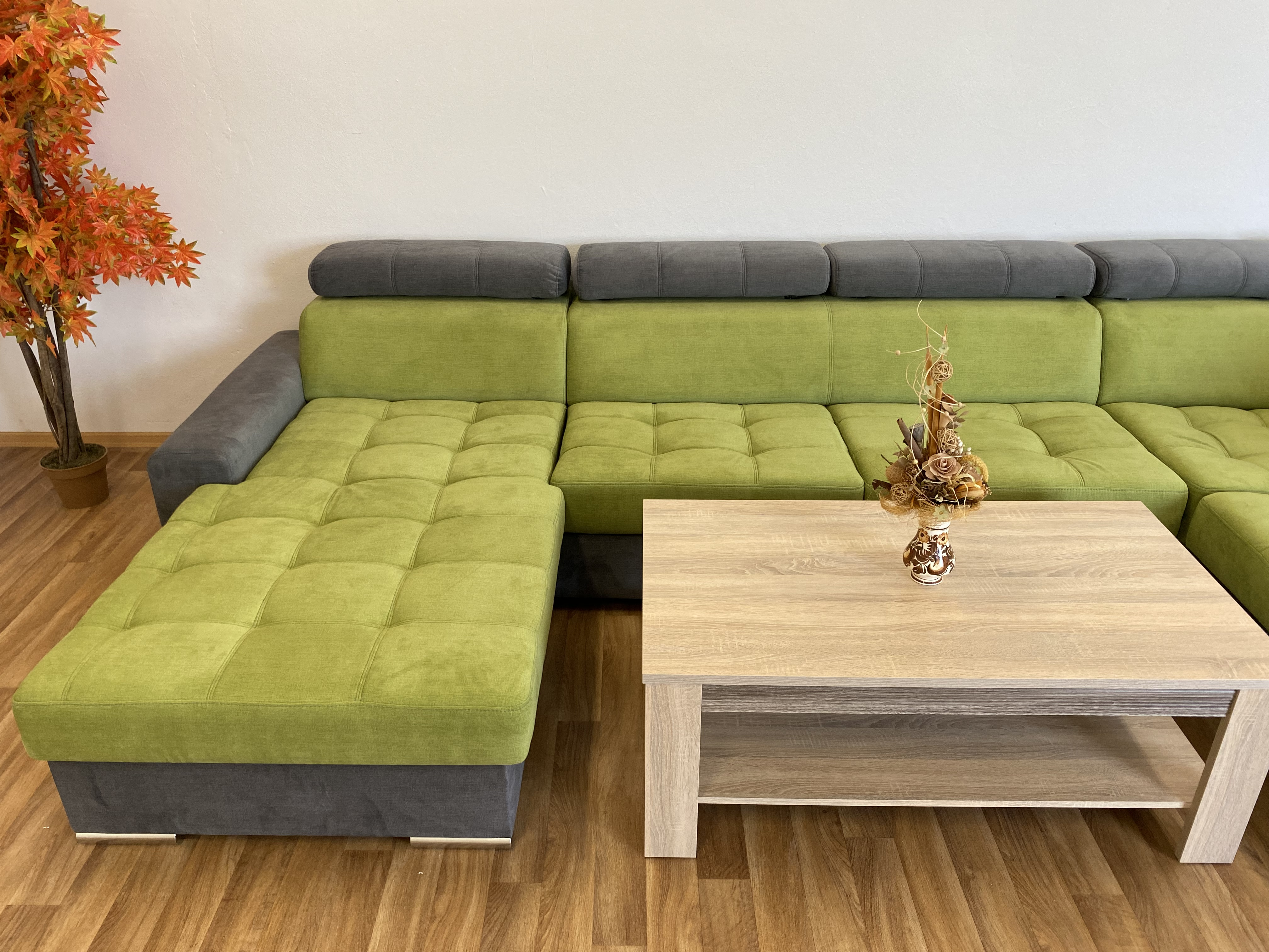 Moderní, velká, rohová sedací souprava do U, MODULO V. Tato sedací souprava vynikne ve větším otevřeném prostoru, po rozložení je vhodná k příležitostnému přespání. U rohové sedací soupravy MODULO V si můžete variabilně volit rozměry jednotlivých dílů sedačky ( viz. obrázek rozměrů ) a tak přizpůsobit její velikost prostoru Vašeho obýváku. Sedací souprava je určena do prostoru - má očalouněná záda. V sedácích jsou pružinové vlnovce a kvalitní studená PUR pěna. Rozkládací sedací souprava disponuje objemnými úložnými prostory. Samozřejmostí je volba orientace stran. Velký výběr potahových látek. Chromované nožičky.