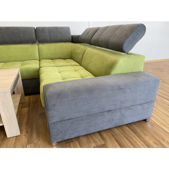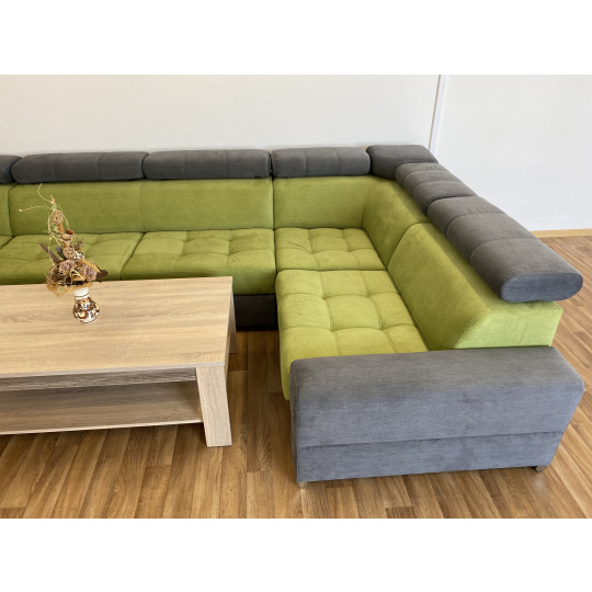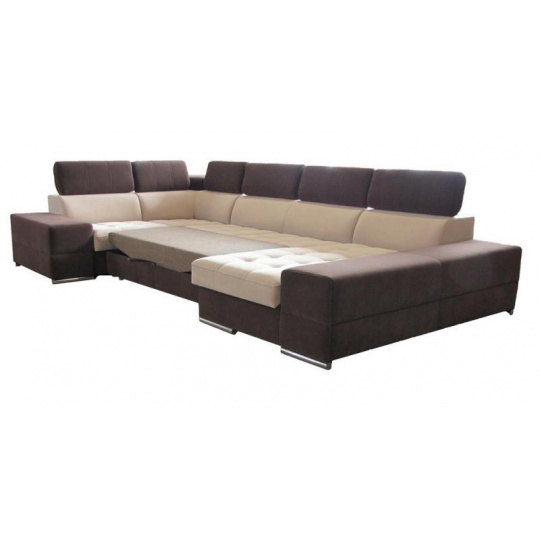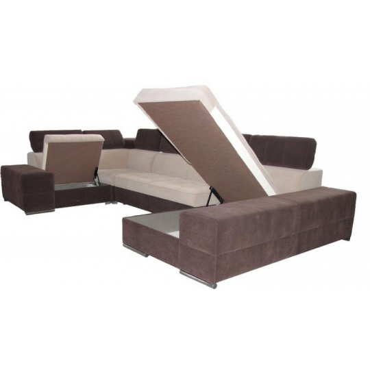 Moderní, velká, rohová sedací souprava do U, MODULO V. Tato sedací souprava vynikne ve větším otevřeném prostoru, po rozložení je vhodná k příležitostnému přespání. U rohové sedací soupravy MODULO V si můžete variabilně volit rozměry jednotlivých dílů sedačky ( viz. obrázek rozměrů ) a tak přizpůsobit její velikost prostoru Vašeho obýváku. Sedací souprava je určena do prostoru - má očalouněná záda. V sedácích jsou pružinové vlnovce a kvalitní studená PUR pěna. Rozkládací sedací souprava disponuje objemnými úložnými prostory. Samozřejmostí je volba orientace stran. Velký výběr potahových látek. Chromované nožičky.