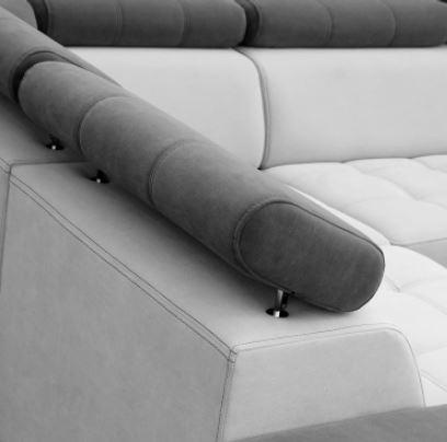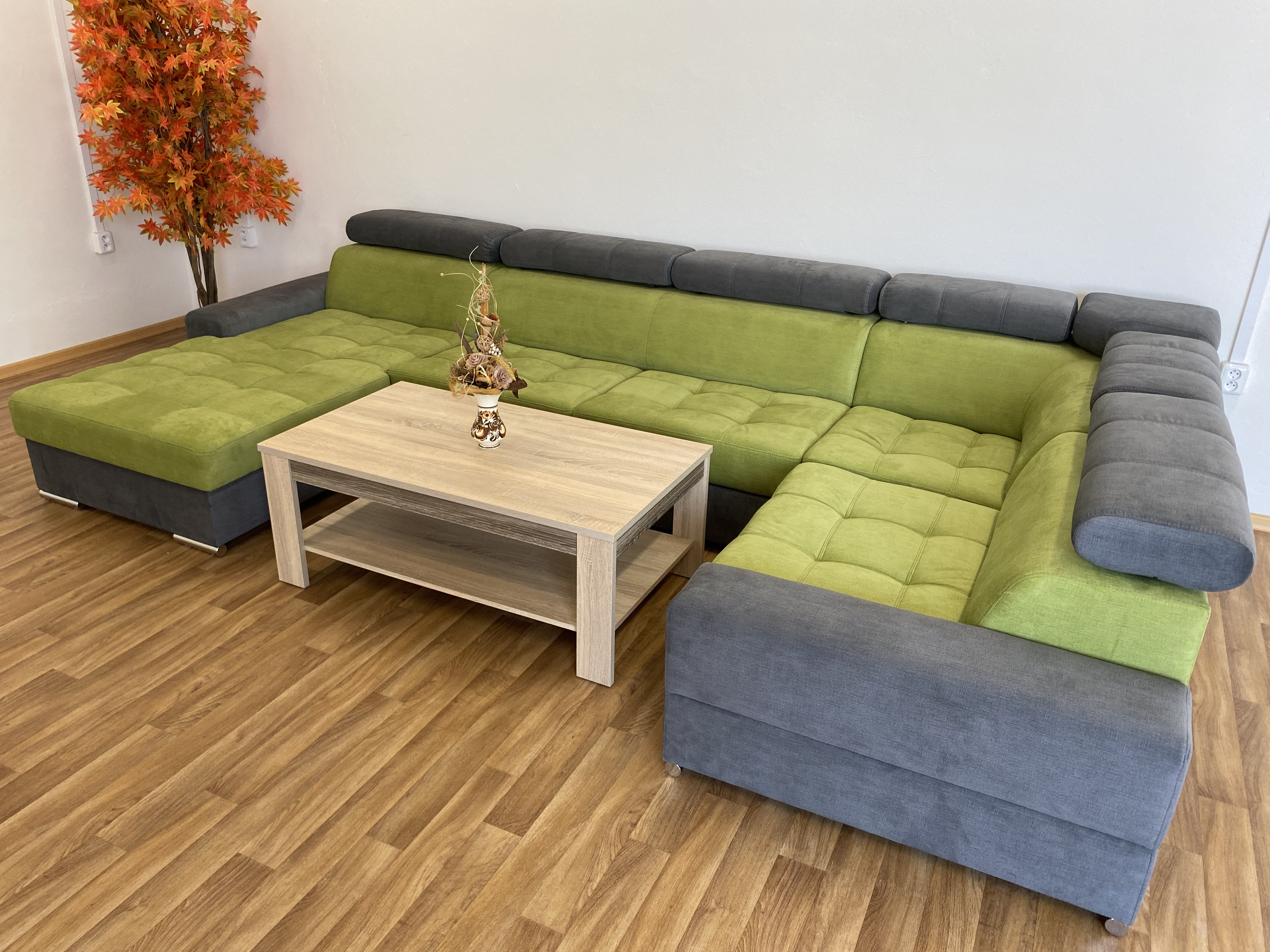 Moderní, velká, rohová sedací souprava do U, MODULO VI. Tato sedací souprava vynikne ve větším otevřeném prostoru, po rozložení je vhodná k příležitostnému přespání. U rohové sedací soupravy MODULO VI si můžete variabilně volit rozměry jednotlivých dílů sedačky ( viz. obrázek rozměrů ) a tak přizpůsobit její velikost prostoru Vašeho obýváku. Sedací souprava je určena do prostoru - má očalouněná záda. V sedácích jsou pružinové vlnovce a kvalitní studená PUR pěna. Rozkládací sedací souprava disponuje objemnými úložnými prostory. Samozřejmostí je volba orientace stran. Velký výběr barev potahových látek Penta. Chromované nožičky.