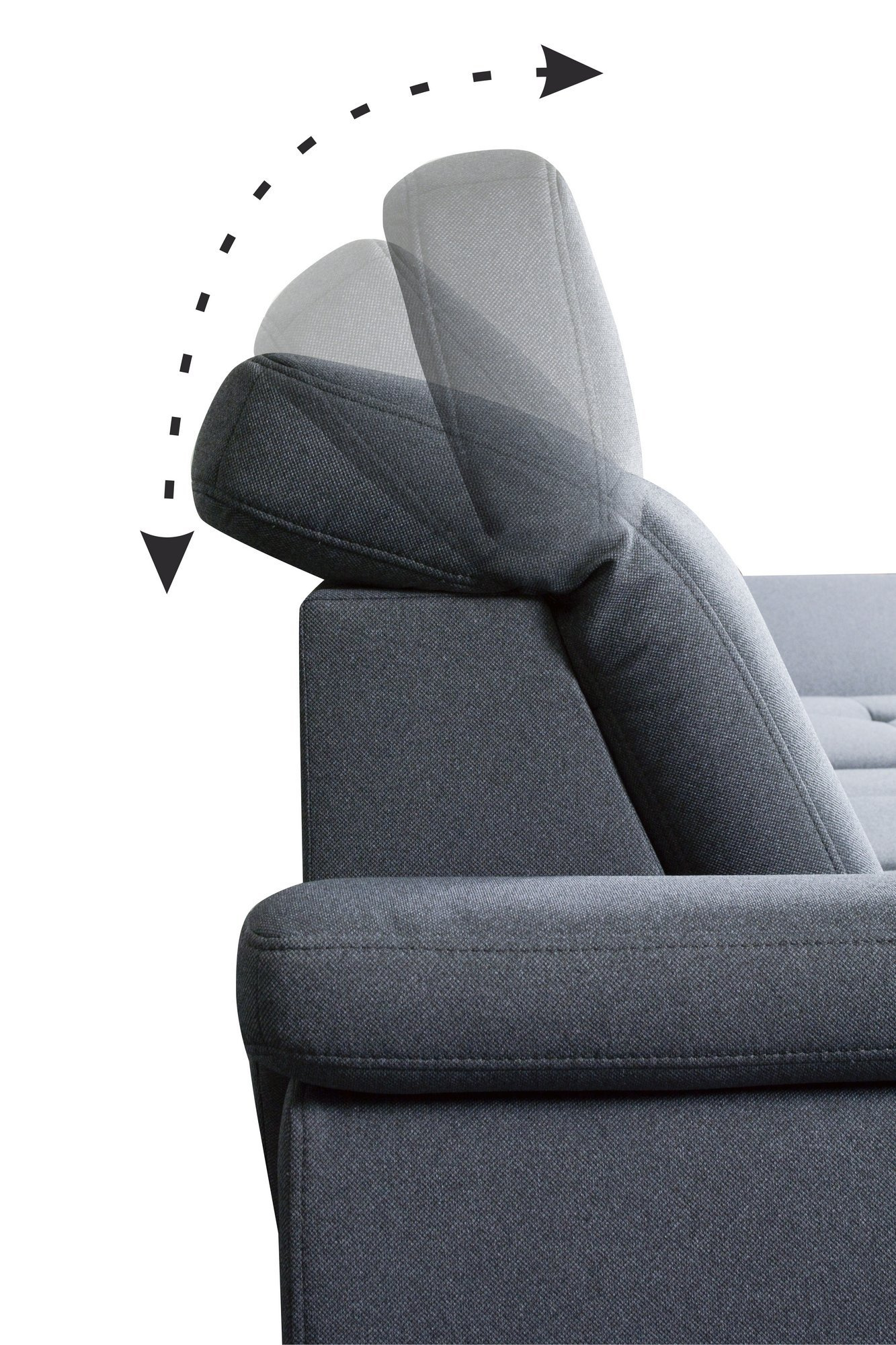 Polohovatelný opěrák na ottomanu s volně loženými polštáři.