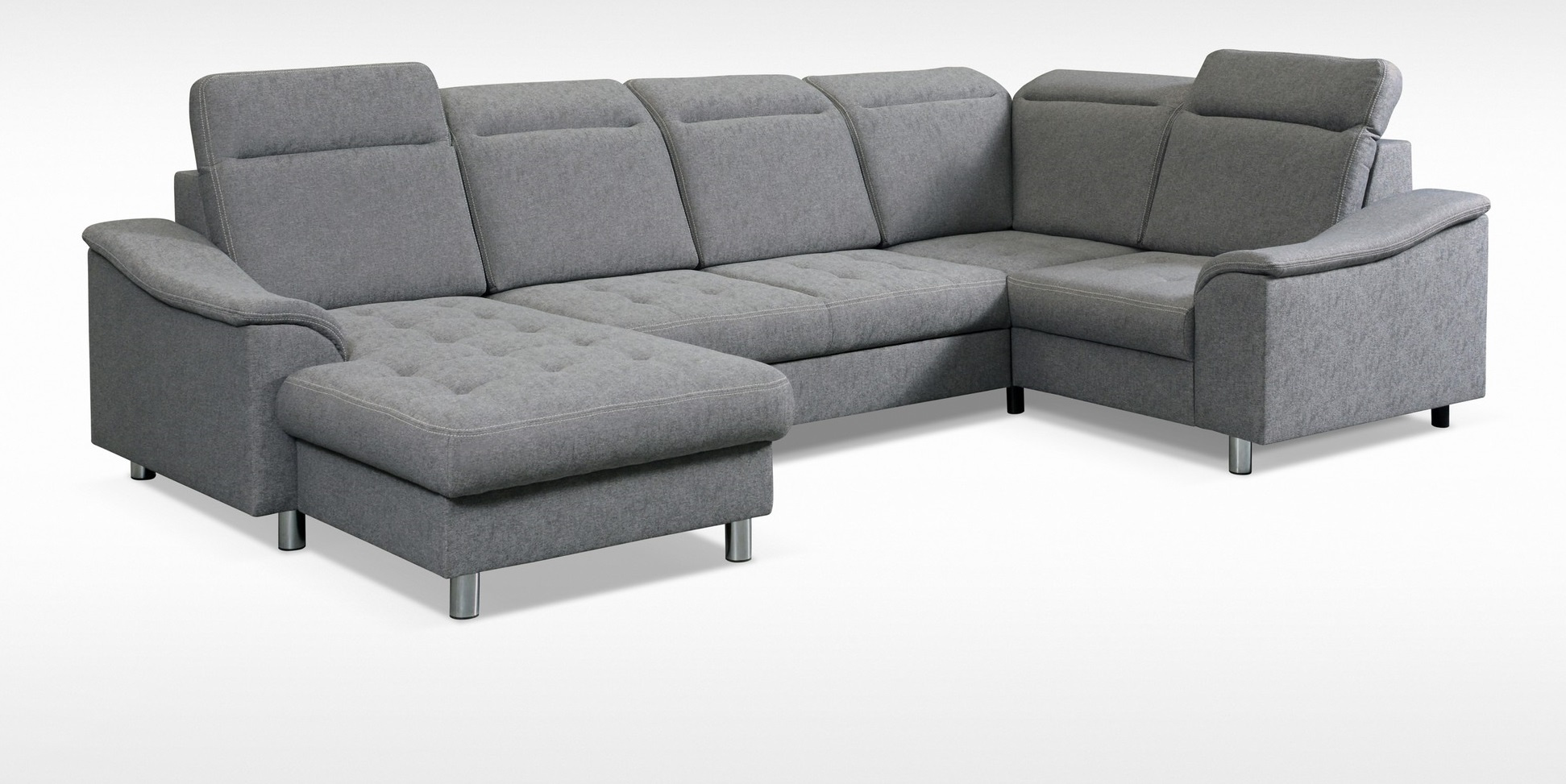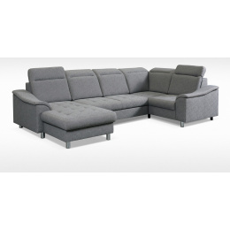 NEVADA moderní modulová sedací souprava do U, rozkládací, pro příležitostné přespání, s úložným prostorem v OT. Výplň sedáků je tvořena kombinací pružin Faliste a PUR pěny, která zajistí pohodlné sezení. Opěrky vyplněny pěnou s vyšší elastičností. Má polohovatelné záhlavníky a chromované ozdobné nožky. Pružinová matrace. Lze volit pravé či levé provedení. Sedací souprava se vyrábí ve velkém výběru potahových látek. K sedací soupravě lze dokoupit křeslo i taburet.