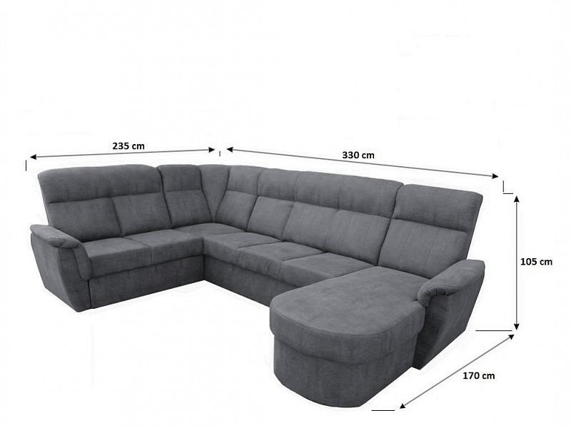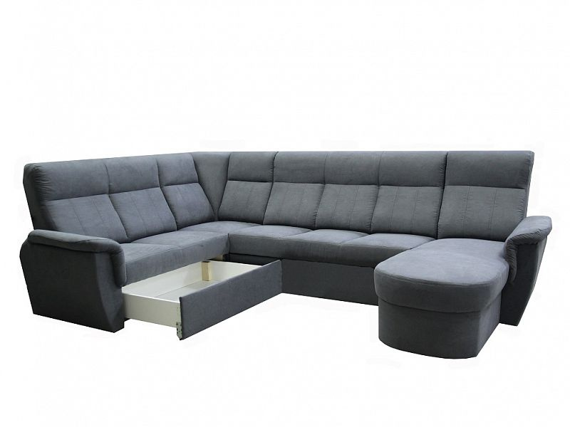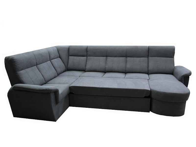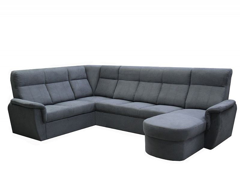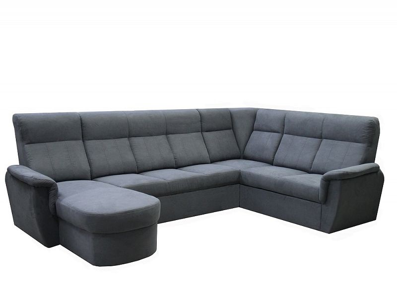Rohová sedací souprava do U PLATON. Sedací souprava je rozkládací s úložným prostorem. V rohovém dílu jsou dvě polohovatelné opěrky zad. Výplň sedáků tvoří pružinové jádro a kvalitní PUR pěna, která zajistí pohodlné sezení. Sedací souprava je v levém nebo pravém provedení. Rohovka do U je dodávána v tm. šedé látce PRIMO 89.