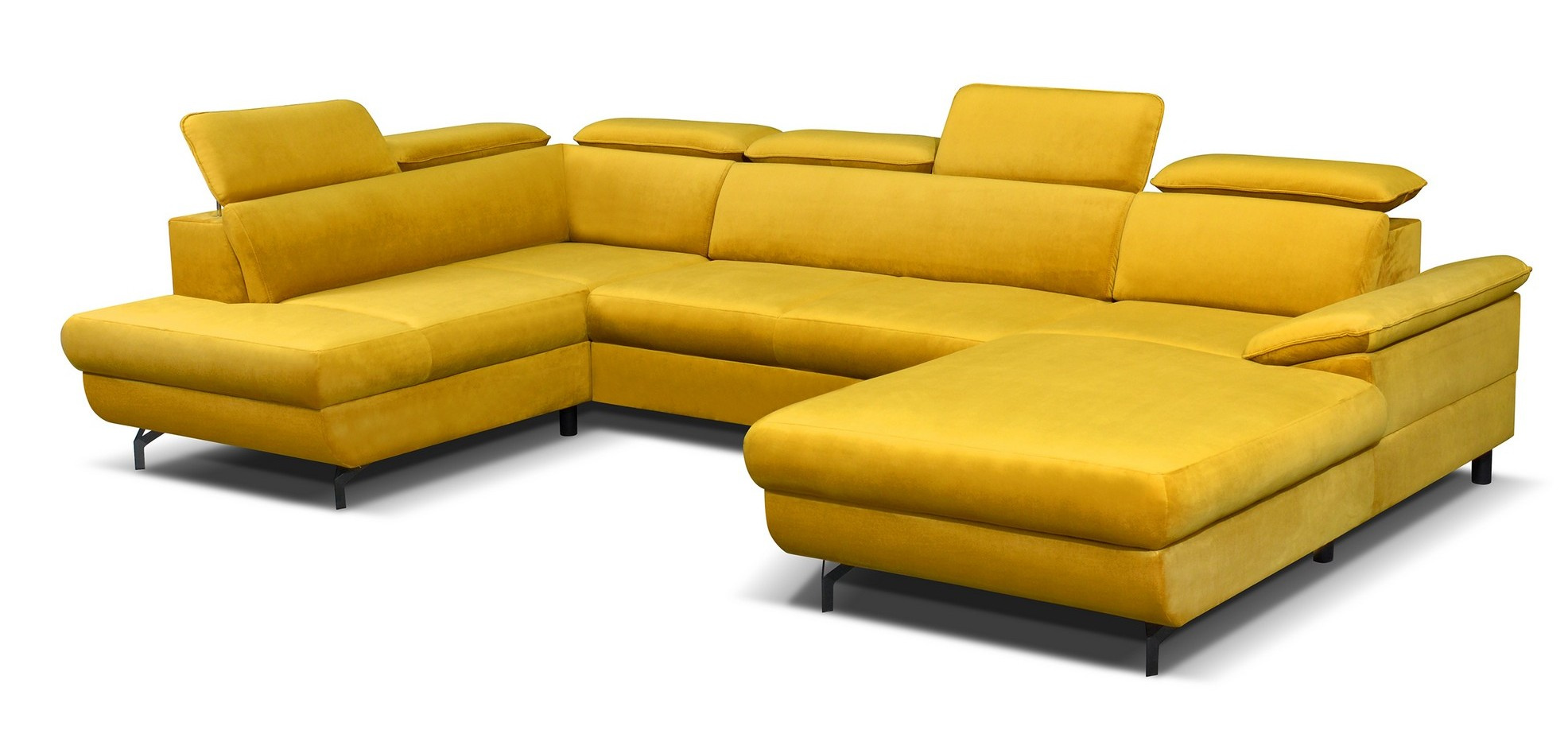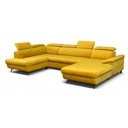 SPIDER moderní rohová sedací souprava do U, rozkládací, pro příležitostné přespání, s úložným prostorem v OT. Výplň sedáků je tvořena kombinací pružin Faliste a PUR pěny, která zajistí pohodlné sezení. Opěrky vyplněny pěnou s vyšší elastičností. Má polohovatelné záhlavníky a chromované ozdobné nožky. Pružinová matrace. Lze volit pravé či levé provedení. Sedací souprava se vyrábí ve velkém výběru potahových látek. K sedací soupravě lze dokoupit taburet.
