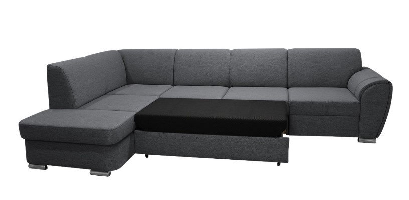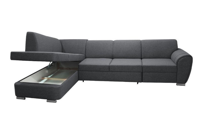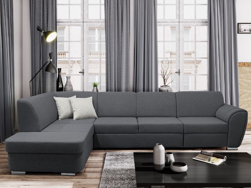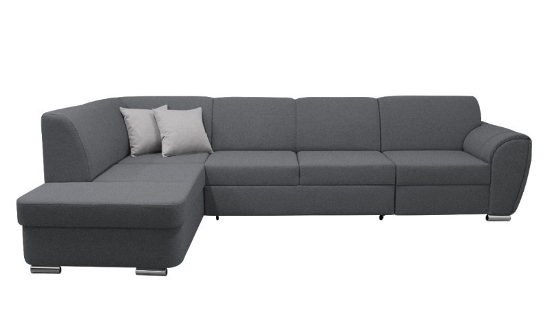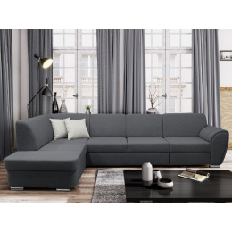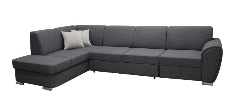 Rohová sedací souprava DOMO bude dokonalým doplňkem do vašeho obývacího pokoje, kde zaujme čestné místo. Barevné provedení je v tmavě šedém tónu. V ceně jsou také dva dekorační polštářky ve světle šedé barvě. Látka má úpravu Water Repellent - nevsakuje tekutiny, možné ji otřít měkkým hadříkem nebo papírovým kapesníčkem. Rovněž nabízí sedací souprava DOMO úložný prostor a funkci rozkladu. Velikost spací plochy je po rozložení 130 x 196 cm. Výplň je tvořená vlnitou pružinou a polyuretanovou pěnou. Hloubka pohovky je v pravém rohu 197 cm a jinde 91 cm. Hloubka sedu je na delší straně 60 cm a na straně rohové 64 cm.