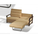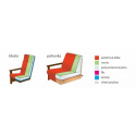 EVA 2 + 1 + 1 je moderní sedací souprava jejíž kostra je vyrobena z masivního buku. Sedáky a opěráky pohovky jsou tvořeny tvarovanými polyuretanovými pěnami, Pružnost sedáku zajišťují vlnité pružiny, křeslo je navíc odpružené dřevěnými lamelami. V širším typu křesla je zabudované rozkládání. Pohovka je buď pevná nebo s rozkládáním. V případě rozkládací pohovky lze jednoduchým způsobem rozložit na dvě pohodlná a pevná lůžka o rozměru 80 x 200 cm každé. Každé lůžko se dá rozložit zvlášť. Takže celková šířka postele bude 160 cm. Podhlavník má dvě polohy - lze nastavit mírný sklon nebo úplnou rovinu ležení. Komfort sezení můžete zvýšit doplněním sedací soupravy o opěrky hlavy, které lze jednoduše zasunou za opěrák. Samozřejmostí je výběr potahových látek a moření dřeva. Sedací soupravy EVA lze libovolně nakombinovat z jednotlivých prvků, které jsou pevné, s úložným prostorem nebo rozkládací, jsou k dispozici na našich prodejnách, kde Vám rádi s Vaší objednávkou poradíme. Svými rozměry bude vyhovovat i majitelům menších obývacích pokojů. Pohovka této sedací soupravy je nerozkládací za příplatek možno objednat pohovku rozkládací.