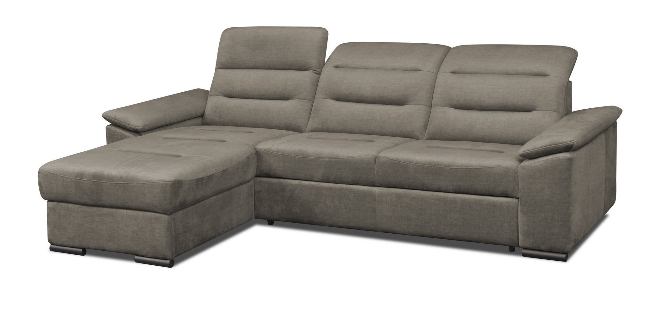 EXCLUSIV moderní modulová rohová sedací souprava, rozkládací, pro příležitostné přespání, s úložným prostorem v OT. Výplň sedáků je tvořena kombinací pružin Faliste a PUR pěny, která zajistí pohodlné sezení. Opěrky vyplněny pěnou s vyšší elastičností. Má polohovatelné záhlavníky a černé ozdobné nožky. Pružinová matrace. Lze volit pravé či levé provedení. Sedací souprava se vyrábí ve velkém výběru potahových látek. K sedací soupravě lze dokoupit křeslo i taburet.