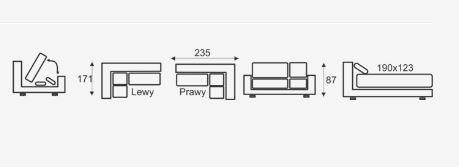 Rozměry: 235 x 171 cm, v. 87 cm, po rozložení 190 x 123 cm