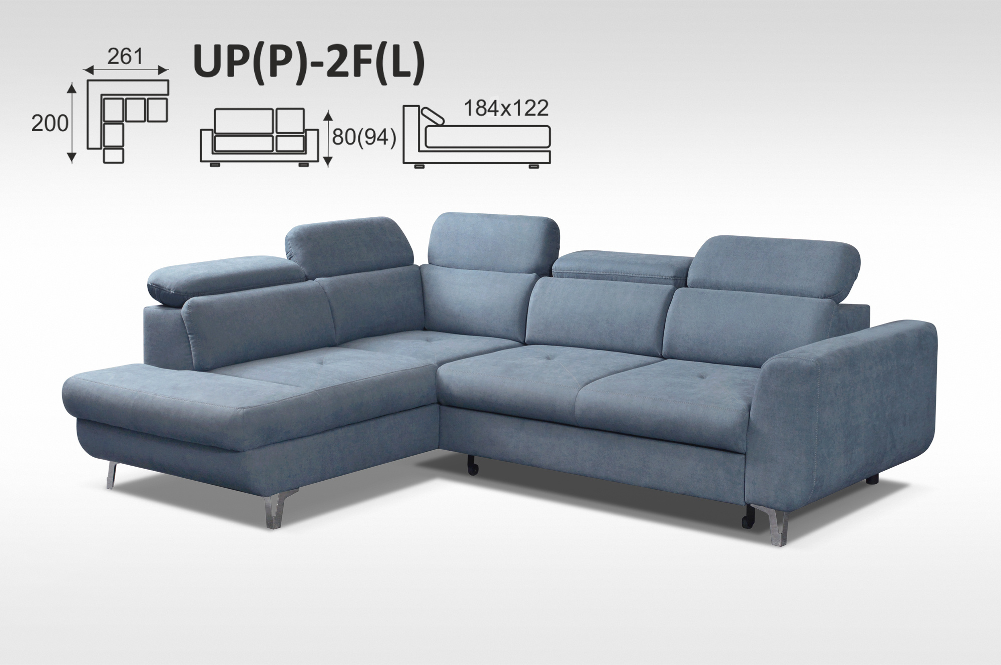 Celkový rozměry: 261 x 200 cm, v. 80-94 cm, po rozložení 184 x 122 cm