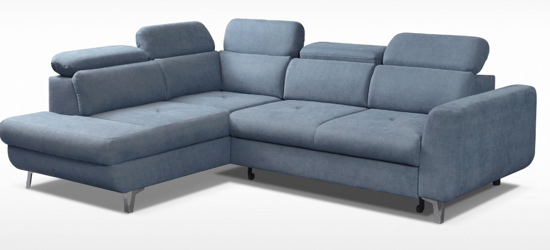 GUSTO moderní rohová sedací souprava, rozkládací, pro příležitostné přespání, s úložným prostorem v OT. Výplň sedáků je tvořena kombinací pružin Faliste a PUR pěny, která zajistí pohodlné sezení. Opěrky vyplněny pěnou s vyšší elastičností. Má polohovatelné záhlavníky a chromované ozdobné nožky. Pružinová matrace. Lze volit pravé či levé provedení. Sedací souprava se vyrábí ve velkém výběru potahových látek. K sedací soupravě lze dokoupit křeslo i taburet.
