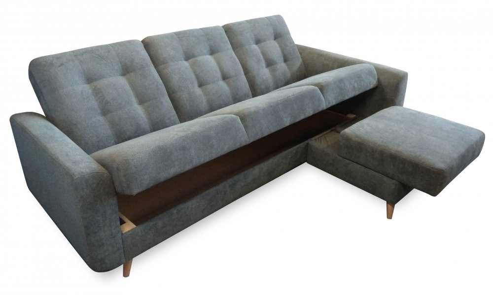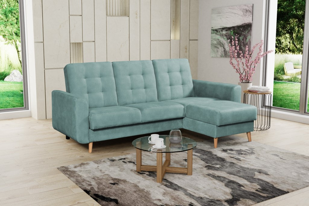 INGRIT moderní rohová sedací souprava, rozkládací, pro příležitostné přespání, s úložným prostorem . Výplň sedáků je tvořena kombinací pružin Faliste a PUR pěny, která zajistí pohodlné sezení. Opěrky vyplněny pěnou s vyšší elastičností. Má dřevěné ozdobné nožky. Rozkládá se pomocí systému klik klak. Lze volit pravé či levé provedení. Sedací souprava se vyrábí ve velkém výběru AKČNÍCH potahových látek.