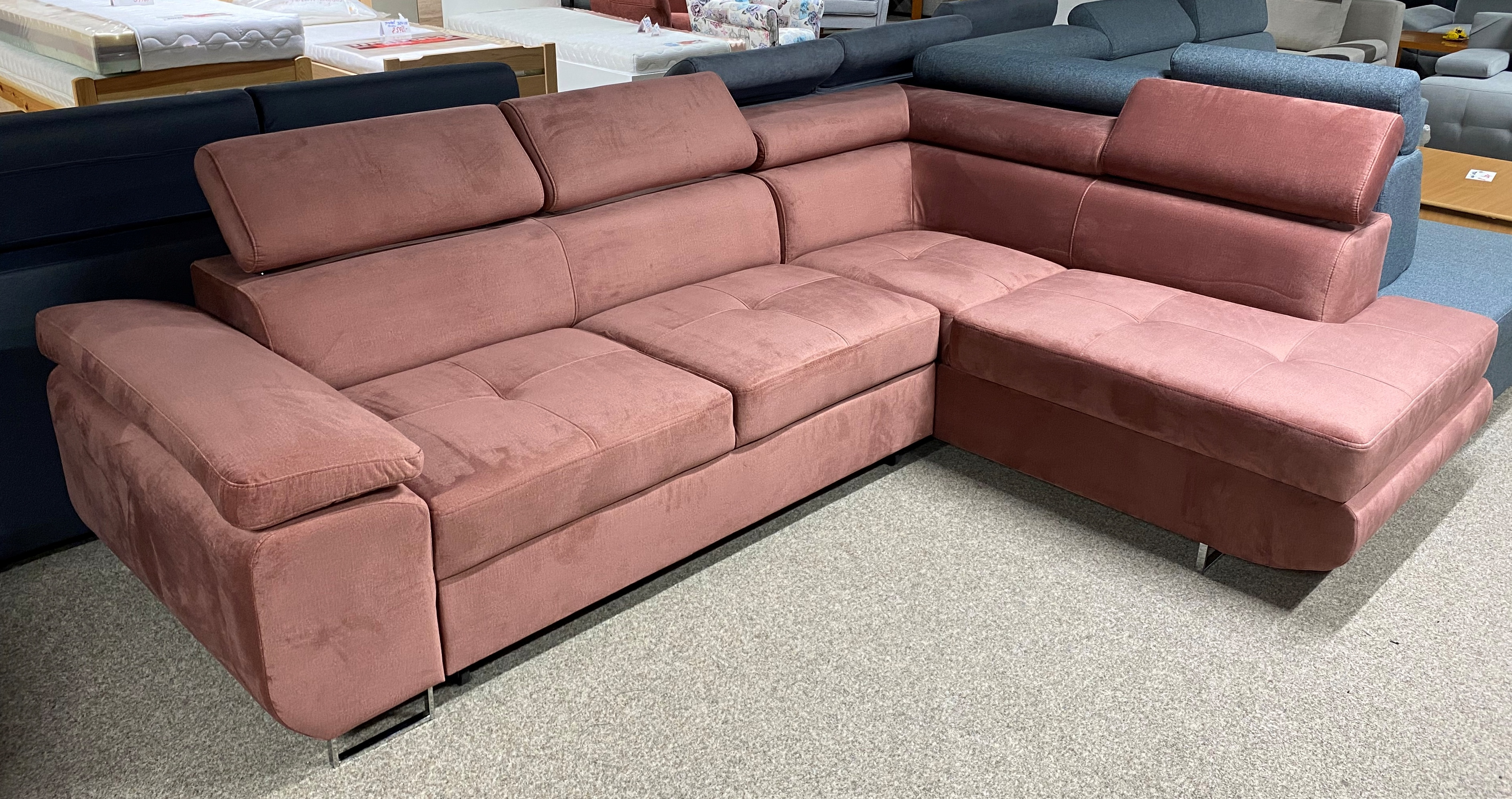Luxusní rohová sedací souprava LIVIO MEDIUM s úložným prostorem, rozkládací. Moderní rohová rozkládací sedací souprava LIVIO. Sedací souprava disponuje praktickým úložným prostorem. Soupravu dodáváme v levém nebo pravém provedení. Výškově nastavitelné záhlavníky. Výplň sedáků sedací soupravy tvoří kvalitní HR pěna. Moderní souprava je vyplněna pružinami Faliste. Pohodlná rozkládací sedací souprava je určena pro občasné spaní. Soupravu rozložíte vysunutím šuplíku