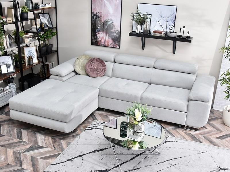 Luxusní rohová sedací souprava LIVIO MINI s úložným prostorem, rozkládací. Moderní rohová rozkládací sedací souprava LIVIO disponuje praktickým úložným prostorem. Soupravu dodáváme v levém nebo pravém provedení. Výškově nastavitelné záhlavníky. Výplň sedáků sedací soupravy tvoří kvalitní HR pěna. Moderní souprava je vyplněna pružinami Faliste. Pohodlná rozkládací sedací souprava je určena pro občasné spaní. Soupravu rozložíte vysunutím šuplíku.