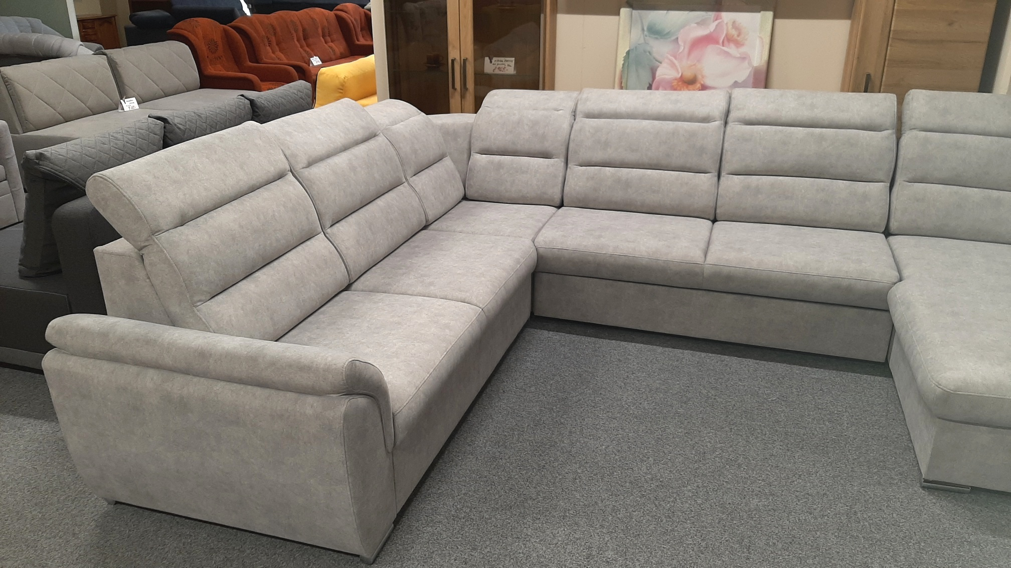 Luxusní sedací souprava do U MILANO MEGA PLUS s úložným prostorem, rozkládací. Moderní velká rozkládací sedací souprava MILANO MEGA PLUS . Sedací souprava disponuje praktickým úložným prostorem. Soupravu dodáváme v levém nebo pravém provedení otomanu. Výškově nastavitelné záhlavníky. Výplň sedáků sedací soupravy tvoří kvalitní HR pěna. Moderní souprava je vyplněna pružinami Faliste. Pohodlná rozkládací sedací souprava je určena pro občasné spaní. Soupravu rozložíte vysunutím šuplíku.