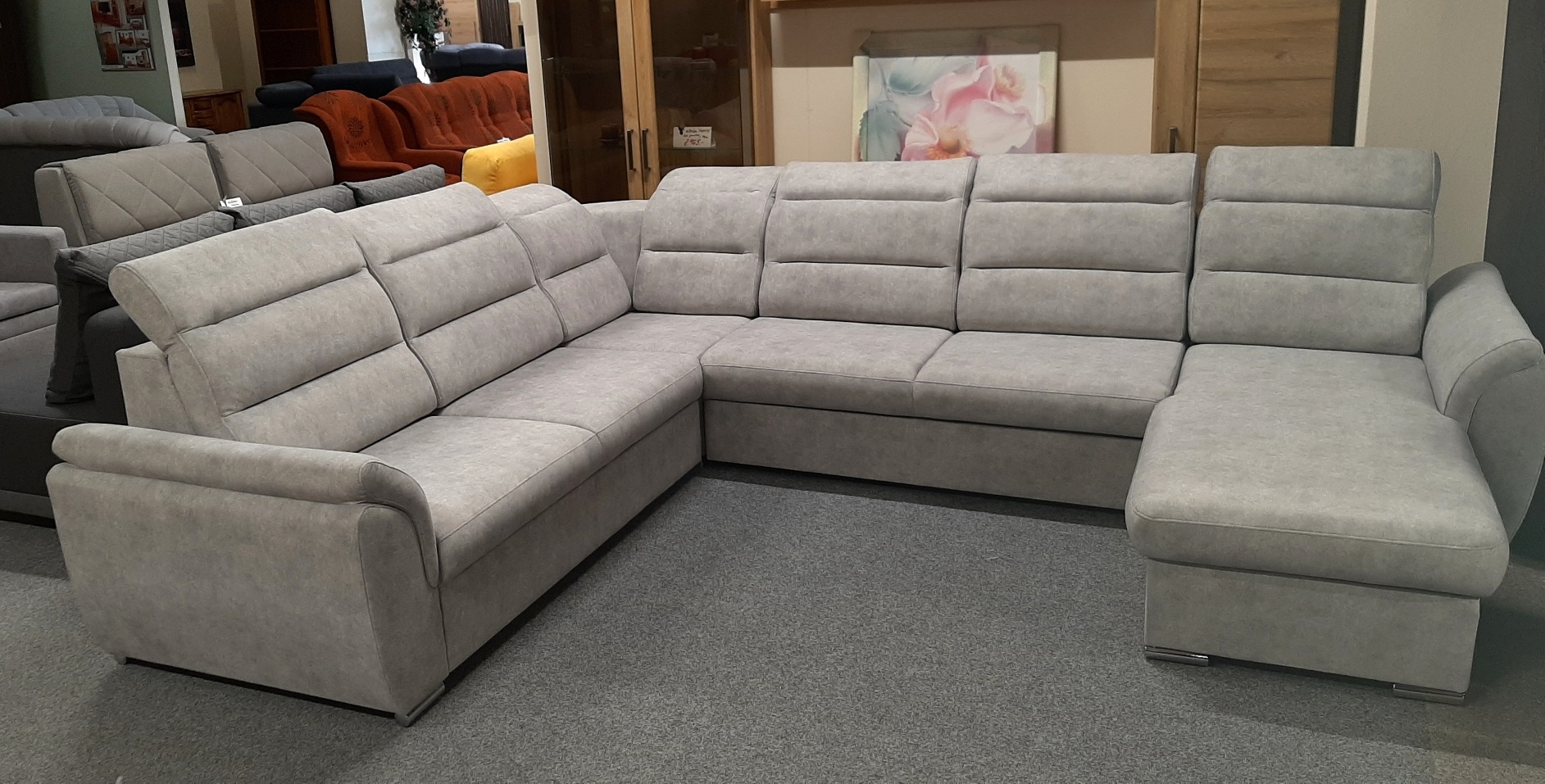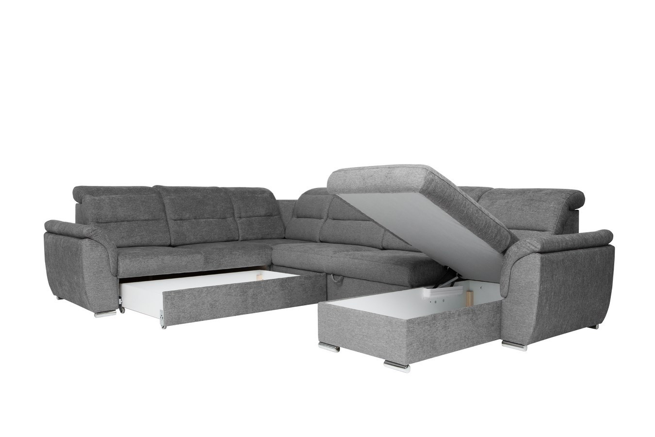Luxusní sedací souprava do U MILANO MEGA PLUS s úložným prostorem, rozkládací. Moderní velká rozkládací sedací souprava MILANO MEGA PLUS . Sedací souprava disponuje praktickým úložným prostorem. Soupravu dodáváme v levém nebo pravém provedení otomanu. Výškově nastavitelné záhlavníky. Výplň sedáků sedací soupravy tvoří kvalitní HR pěna. Moderní souprava je vyplněna pružinami Faliste. Pohodlná rozkládací sedací souprava je určena pro občasné spaní. Soupravu rozložíte vysunutím šuplíku.