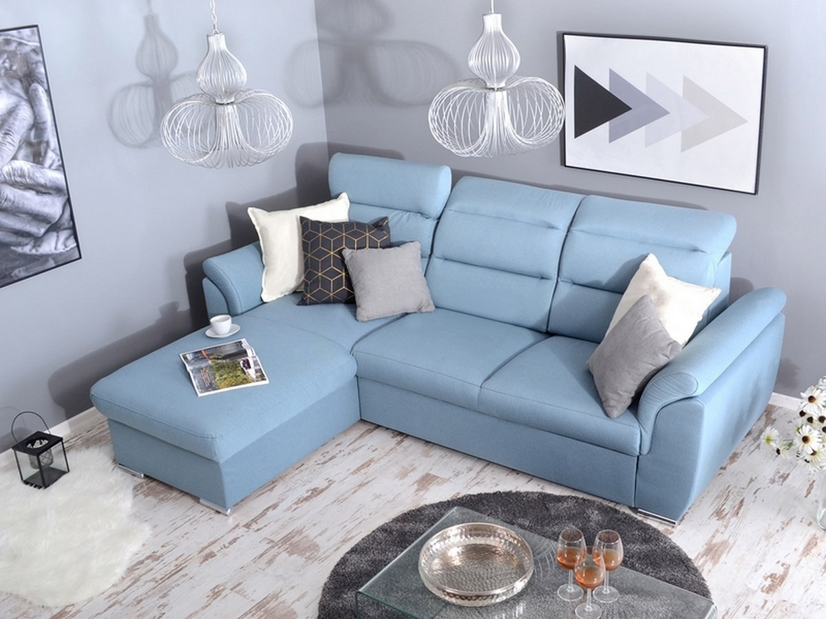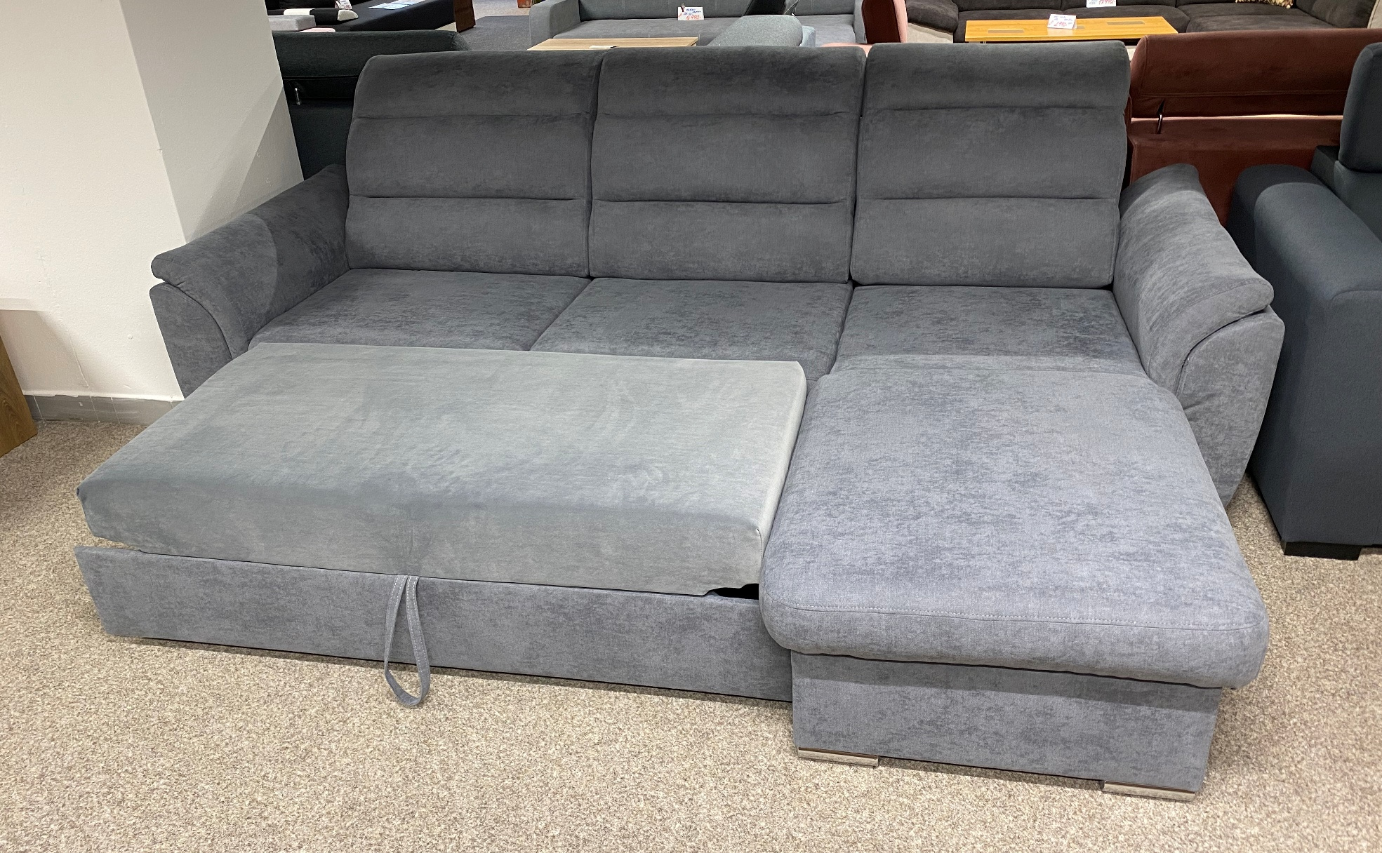 Luxusní rohová sedací souprava MILANO MINI s úložným prostorem, rozkládací. Moderní rohová rozkládací sedací souprava MILANO. Sedací souprava disponuje praktickým úložným prostorem. Soupravu dodáváme v levém nebo pravém provedení. Výškově nastavitelné záhlavníky. Výplň sedáků sedací soupravy tvoří kvalitní HR pěna. Moderní souprava je vyplněna pružinami Faliste. Pohodlná rozkládací sedací souprava je určena pro občasné spaní. Soupravu rozložíte vysunutím šuplíku.