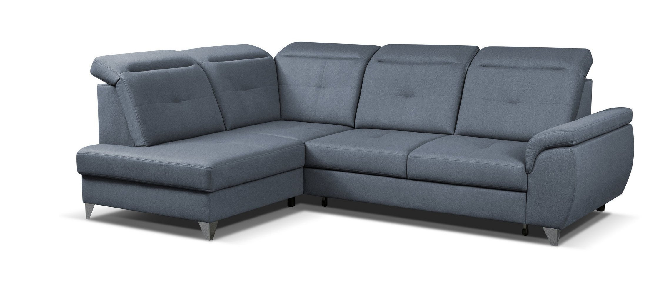 MONELI moderní rohová sedací souprava, rozkládací, pro příležitostné přespání, s úložným prostorem v OT. Výplň sedáků je tvořena kombinací pružin Faliste a PUR pěny, která zajistí pohodlné sezení. Opěrky vyplněny pěnou s vyšší elastičností. Má polohovatelné záhlavníky a chromované ozdobné nožky. Pružinová matrace. Lze volit pravé či levé provedení. Sedací souprava se vyrábí ve velkém výběru potahových látek.