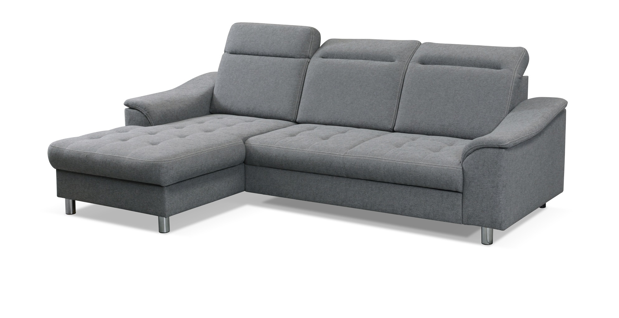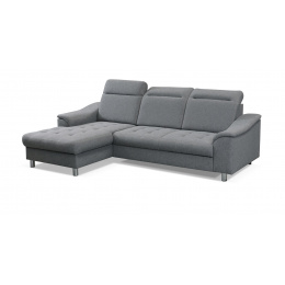 NEVADA moderní modulová rohová sedací souprava, rozkládací, pro příležitostné přespání, s úložným prostorem v OT. Výplň sedáků je tvořena kombinací pružin Faliste a PUR pěny, která zajistí pohodlné sezení. Opěrky vyplněny pěnou s vyšší elastičností. Má polohovatelné záhlavníky a chromované ozdobné nožky. Pružinová matrace. Lze volit pravé či levé provedení. Sedací souprava se vyrábí ve velkém výběru potahových látek. K sedací soupravě lze dokoupit křeslo i taburet.