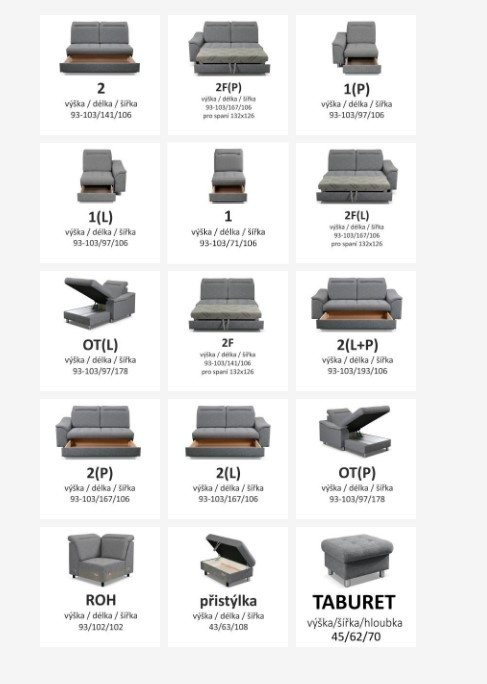 Celkový rozměry: 269 x 269 cm, v. 93-103 cm, po rozložení 126 x 190 cm