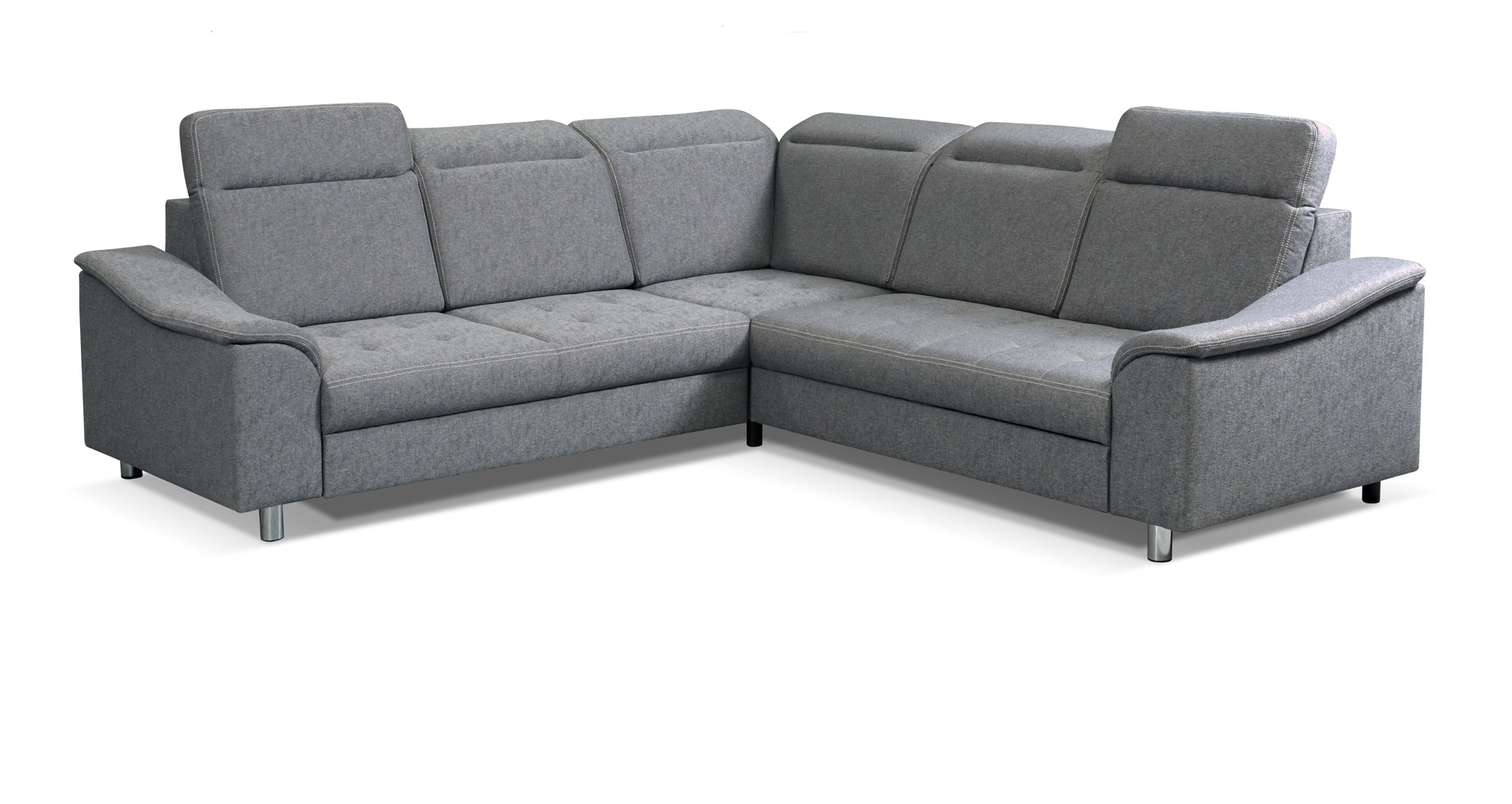 NEVADA moderní modulová rohová sedací souprava, rozkládací, pro příležitostné přespání, s úložným prostorem v OT. Výplň sedáků je tvořena kombinací pružin Faliste a PUR pěny, která zajistí pohodlné sezení. Opěrky vyplněny pěnou s vyšší elastičností. Má polohovatelné záhlavníky a chromované ozdobné nožky. Pružinová matrace. Lze volit pravé či levé provedení. Sedací souprava se vyrábí ve velkém výběru potahových látek. K sedací soupravě lze dokoupit křeslo i taburet.