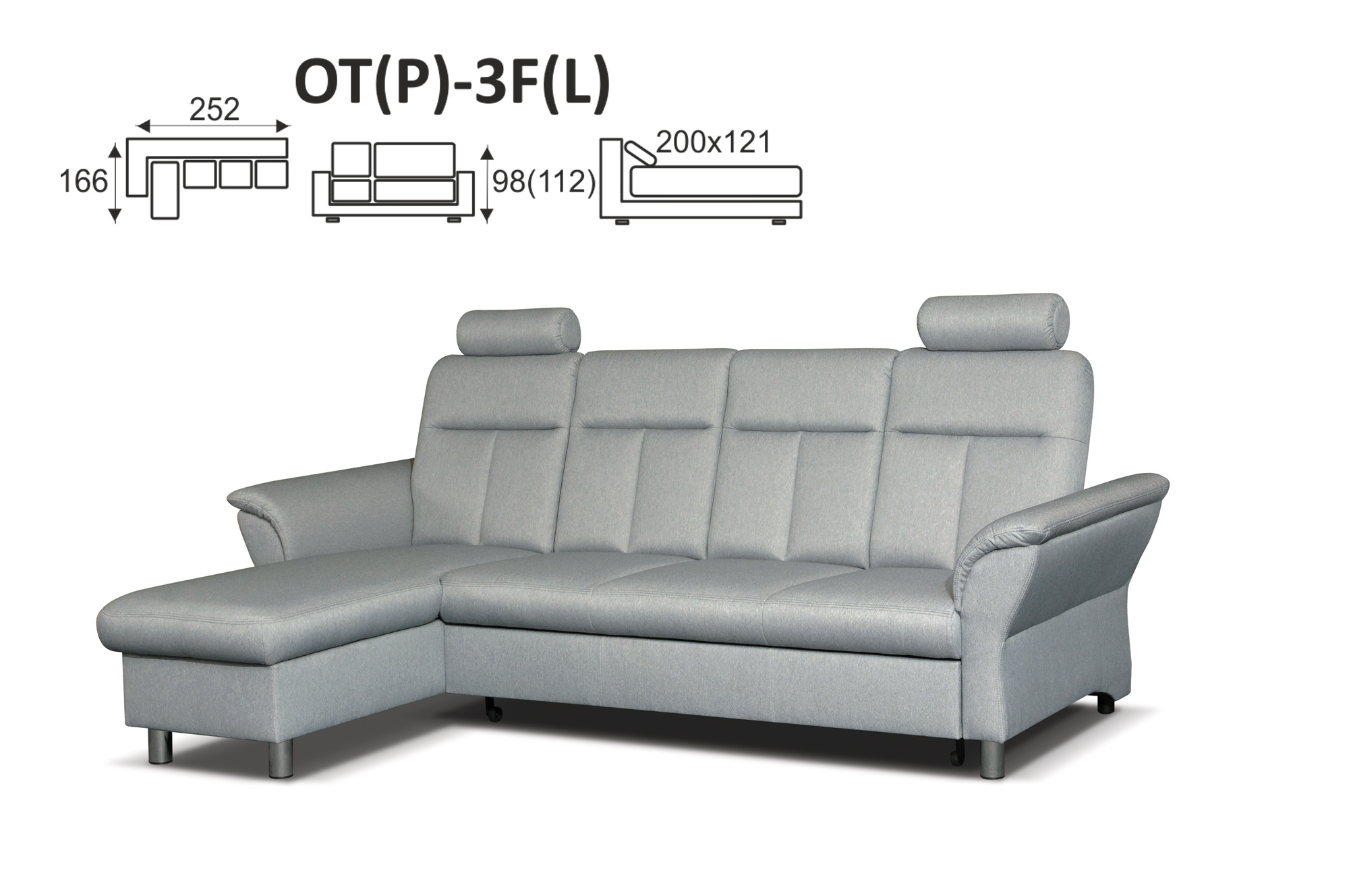 Rozměr: 166 x 252 cm, v. 98 - 112 cm, po rozložení 200 x 121 cm
