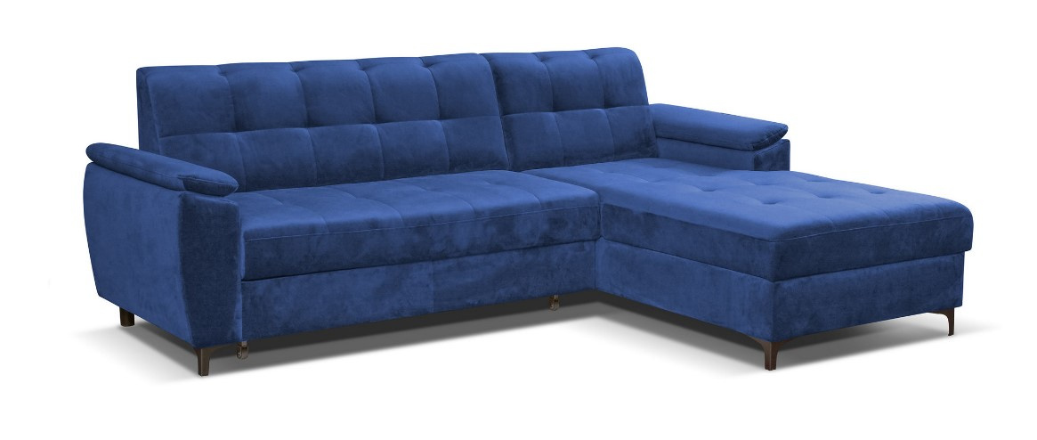 VELLA moderní rohová sedací souprava, rozkládací, pro příležitostné přespání, s úložným prostorem v OT. Výplň sedáků je tvořena kombinací pružin Faliste a PUR pěny, která zajistí pohodlné sezení. Opěrky vyplněny pěnou s vyšší elastičností. Lze volit pravé či levé provedení. Sedací souprava se vyrábí ve velkém výběru AKČNÍCH potahových látek.