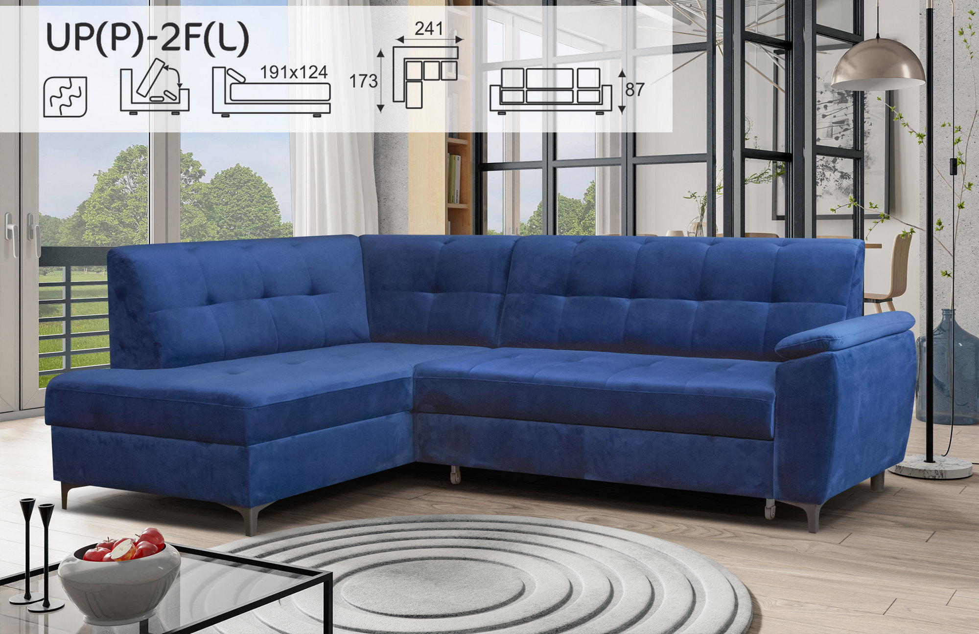 Rohová sedací souprava VELLA - 2F + UP ( pravé nebo levé provedení )