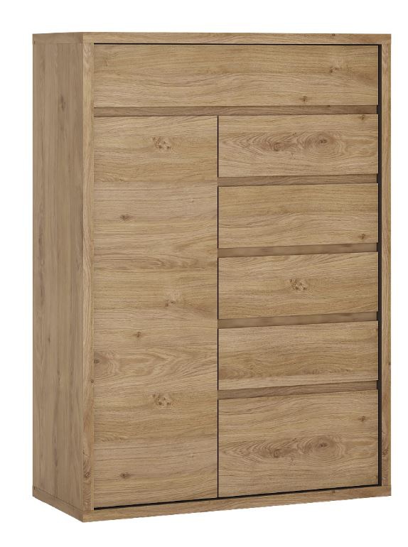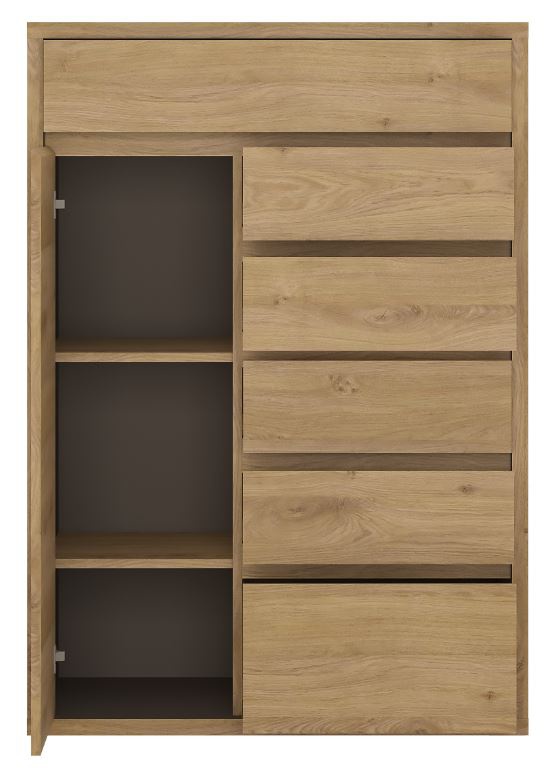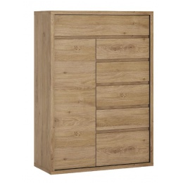 Komoda 32 SHETLAND, kombinovaná komoda s policemi a šesti šuplíky.