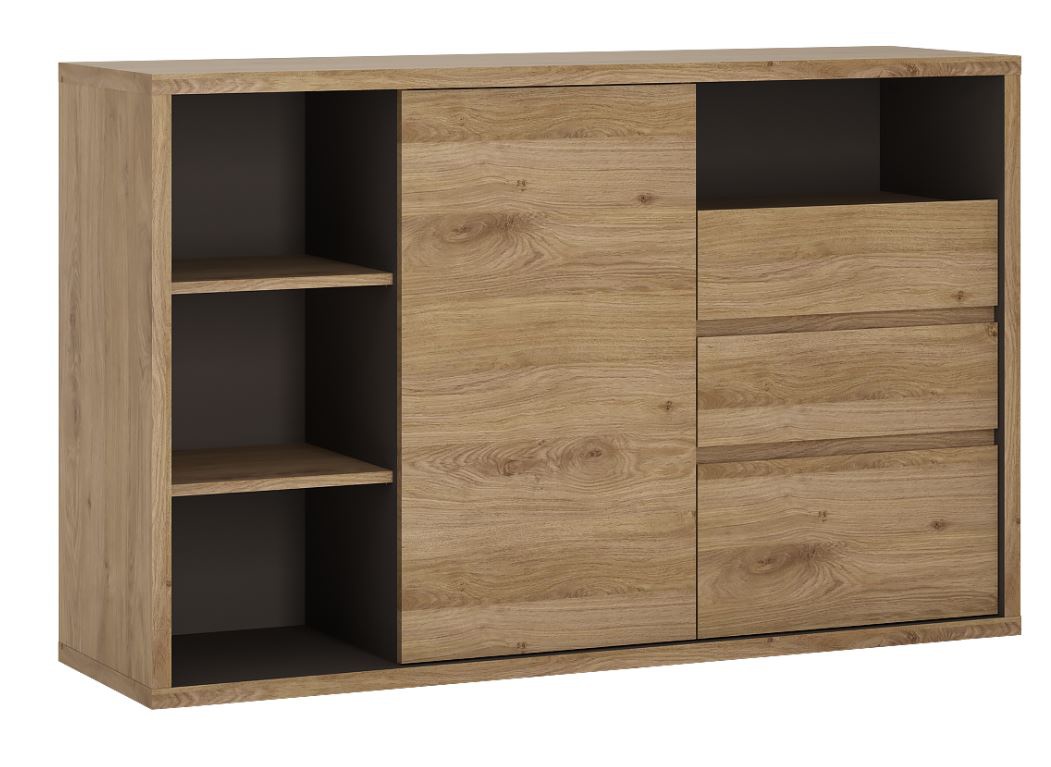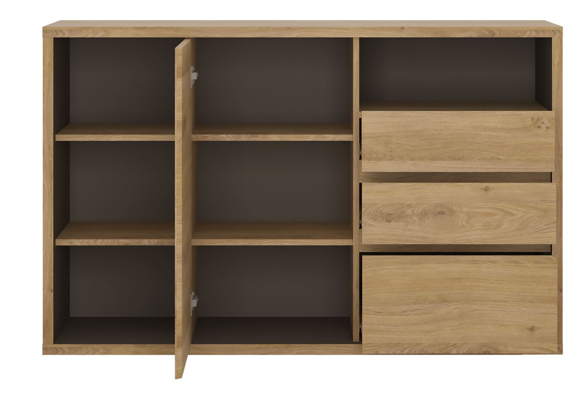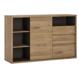 Komoda 43 SHETLAND, kombinovaná komoda s policemi a třemi šuplíky.