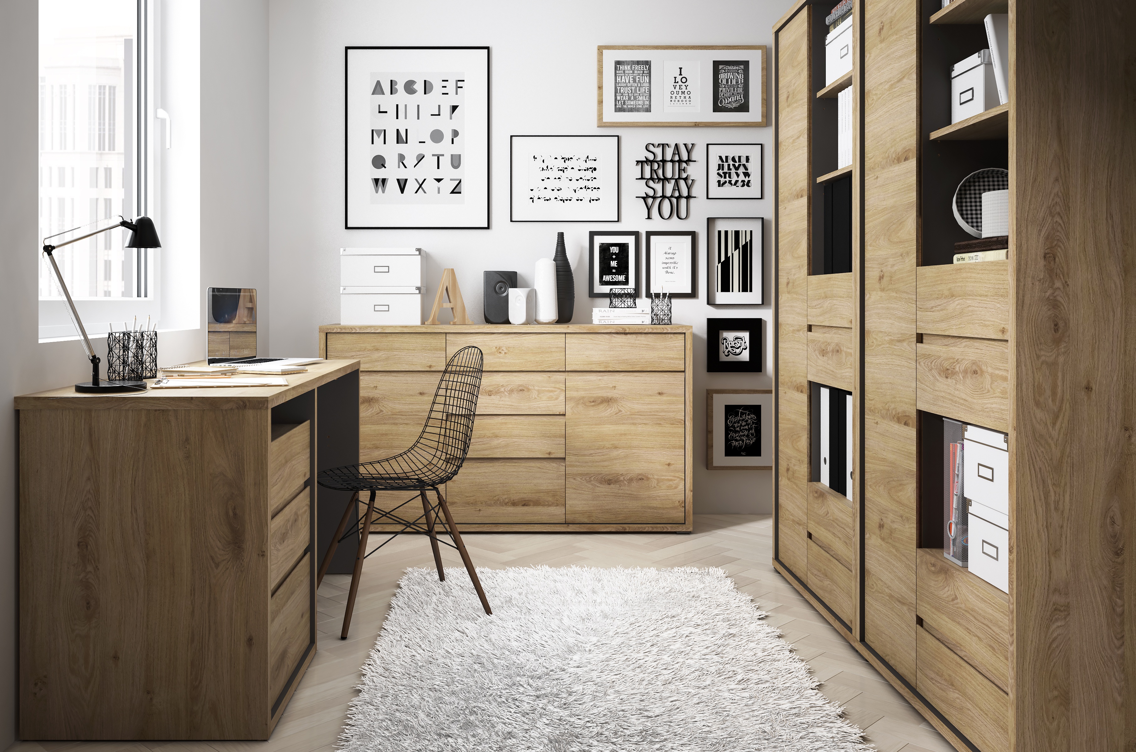 Systém SHETLAND, jednoduchý, funkční v atraktivním barevném provedení. Umožní Vám sestavit obývací pokoj s jídelnou a studentský pokoj. Jednotlivé prvky sektoru SHETLAND můžete libovolně kombinovat. Nábytek je vyrobený z kvalitního lamina v dekoru Dub Shetland / šedá. Je odolný proti poškrábání, vlhkosti a vysokým teplotám.