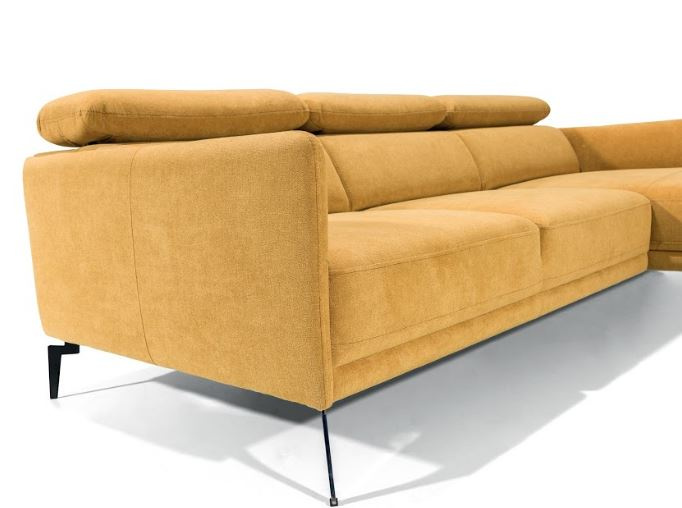 Moderní, pohodlná rohová sedací souprava na kovových nožičkách černé barvy. Sedačka se vyznačuje lehkostí a elegancí a vzhledem ke svým rozměrům se vejde i do menšího obývacího pokoje. Rohovka je pevná - bez rozkladu, vybavená moderními nastavitelnými opěrkami hlavy. Velký výběr potahových látek v nešpinivé povrchové úpravě je samozřejmostí.