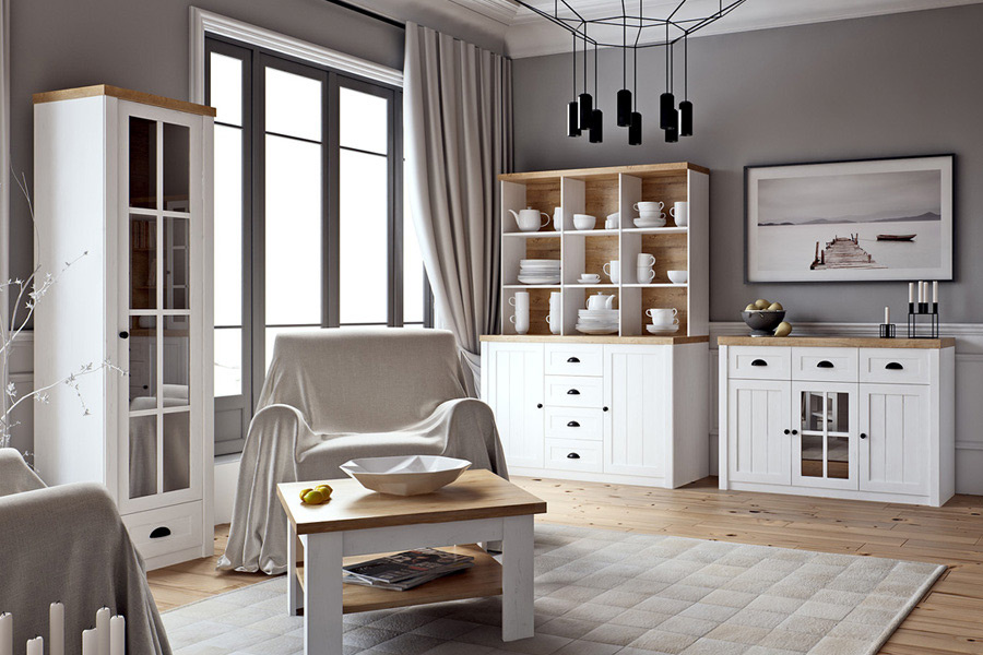 Elegantní kolekce rustikálního nábytku inspirovaná francouzskou Provence. Vybavte sektorem PROWANSJA obývací pokoj, jídelnu nebo ložnici. Dostanete do bytu svěží závan jihu Francie. Nábytek PROWANSJA je vyroben z kvalitního lamina v příjemném barevném provedení Sosna Andersen ( korpus a čelní plochy ) v kombinaci s Dubem Lefkas ( horní deska ). Nově jsme zařadili do nabídky sektoru PROWANSJA barevné provedení zelená ( green ) a šedá ( grey ). Tato jedinečná kombinace dodá interiéru hravost a svěžest. Nadčasovým prvkem nábytku PROWANSJA jsou kovové úchyty.