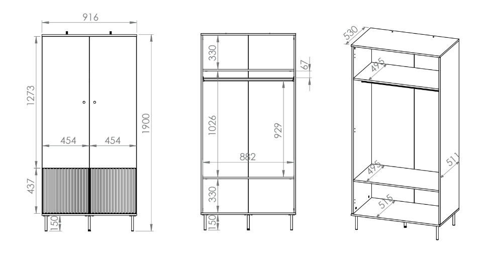 SOPHIE 01 šatní skříň - dvoudvířková se dvěmi policemi a šatní tyčí