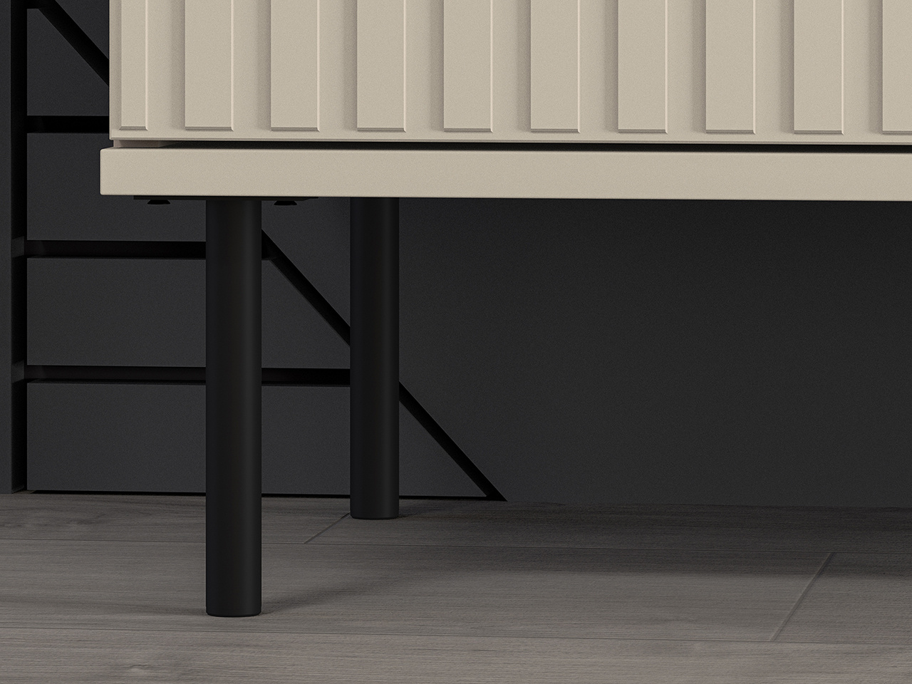 Moderní, minimalistický nábytek s elegantně řešenými detaily. Systémovým nábytkem SOPHIE zařídíte obývací pokoj v nadčasové dekoru Cashmere se zlatými úchyty. Nábytek je vyroben z kvalitního lamina ( korpus ) a MDF ( dvířka a čela šuplíků ) a je postaven na vysoké nožičky. Tiché dovírání dvířek, plný výsuv u šuplíků a vnitřní osvětlení vitrín v základní výbavě, dál zvyšují standart sektoru SOPHIE. Zajímavým dekorativním prvkem jsou svislé prolisy čelních ploch na dvířkách a šuplících.