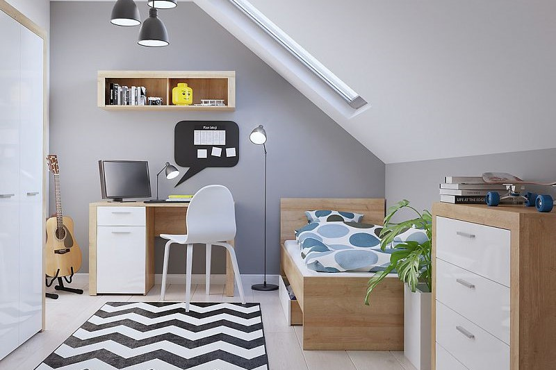 Osloví vás pouze dokonalý moderní design nábytku? Pak si jistě zamilujete novou kolekci BALDER. Jednoduchý styl a univerzální kombinace barev dub riviéra a bílý lesk budou základem pro stylové bydlení. Originálními prvky systému BALDER jsou zesílené přední hrany korpusu a kontrastní elegantní úchyty. S tímto nábytkem můžete s chutí vybavit ložnici a obývací či studentský pokoj.