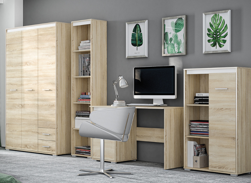 Sektorový nábytek AVO je v barevném provedení: dub sonoma ( korpus + čelní plochy ), dub sonoma + antracit + bílá ( výměnná lišta )