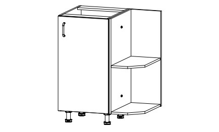 Spodní skříňka kuchyně SYCYLIA D25PZ - policová, ukončovací. Lze zvolit pravé nebo levé provedení. Výška spodní skříňky je bez pracovní desky. Nahoře je police ukončena pracovní deskou a je našroubovaná na korpus skříňky.
