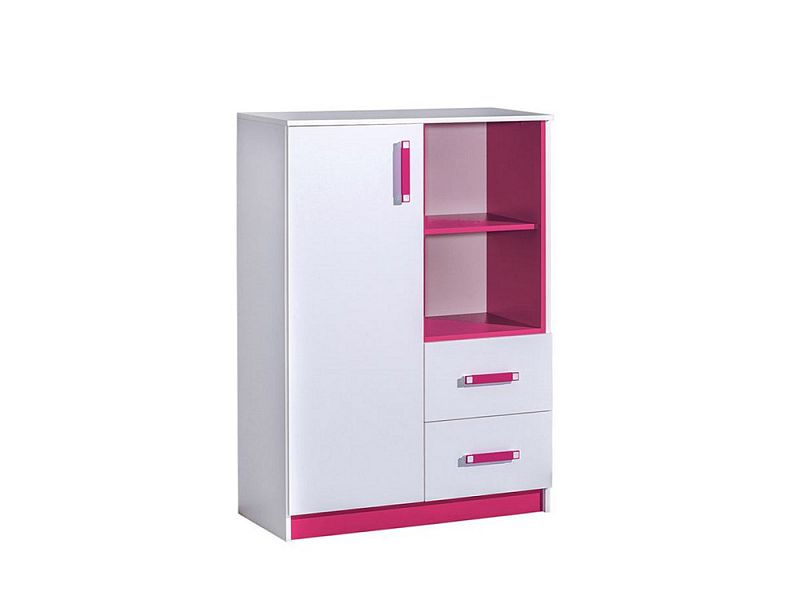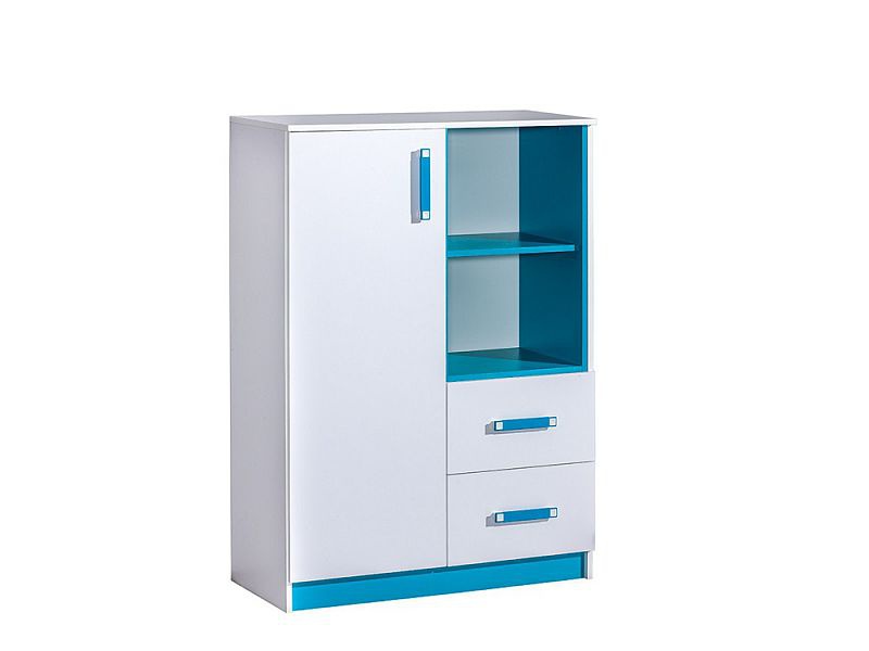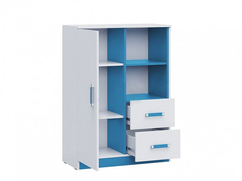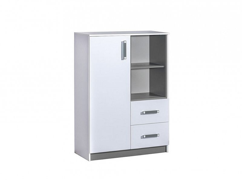 Komoda TARA 6 - policová s plnými dvířky, otevřenou odkládací nikou a šuplíky